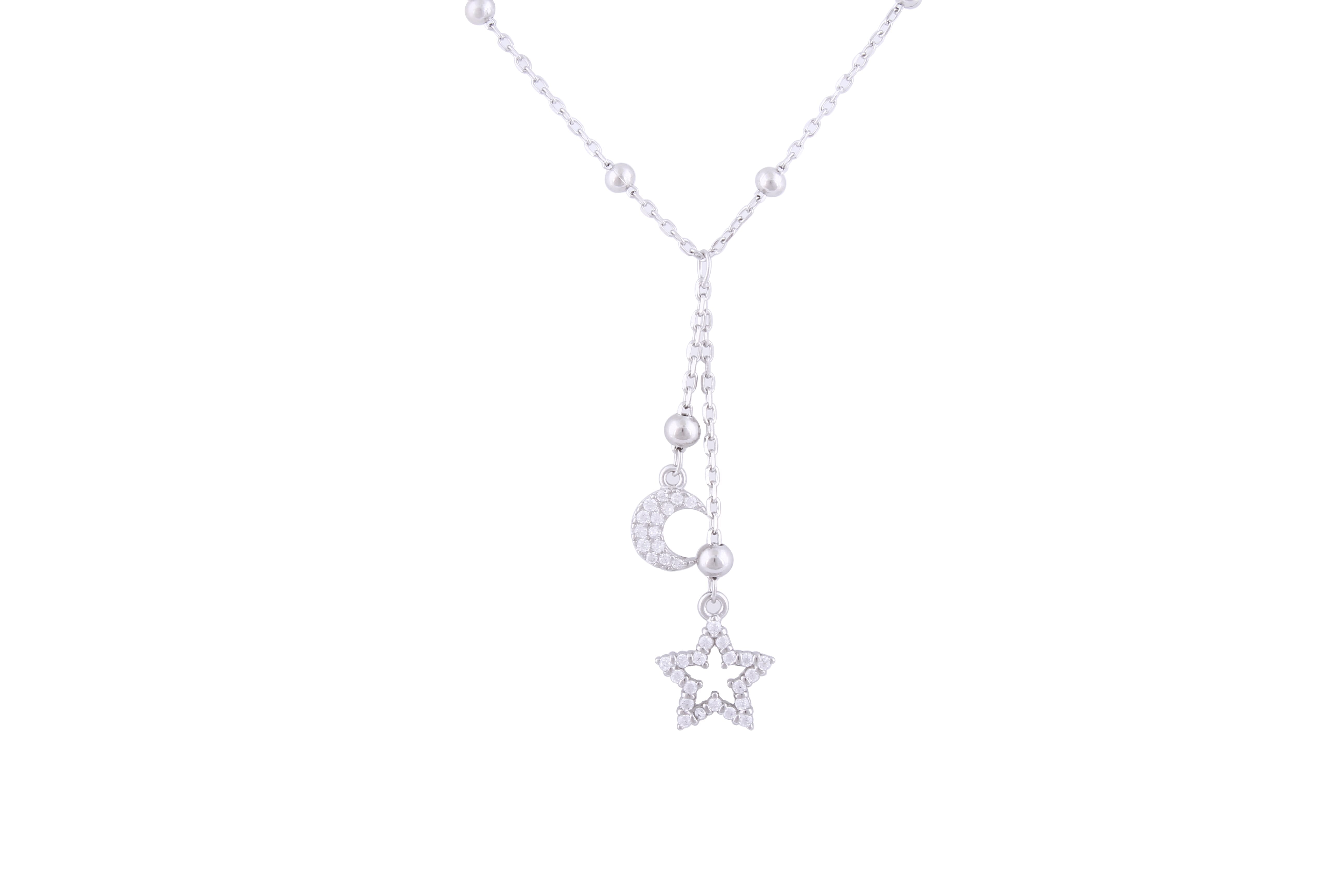 Introducing the "Asfour Silver Necklace With Crescent & Star Design," a symbol of celestial elegance and timeless beauty. This exquisite necklace seamlessly combines the lustrous charm of silver with the iconic crescent and star motif, creating a piece that radiates sophistication and spiritual significance.