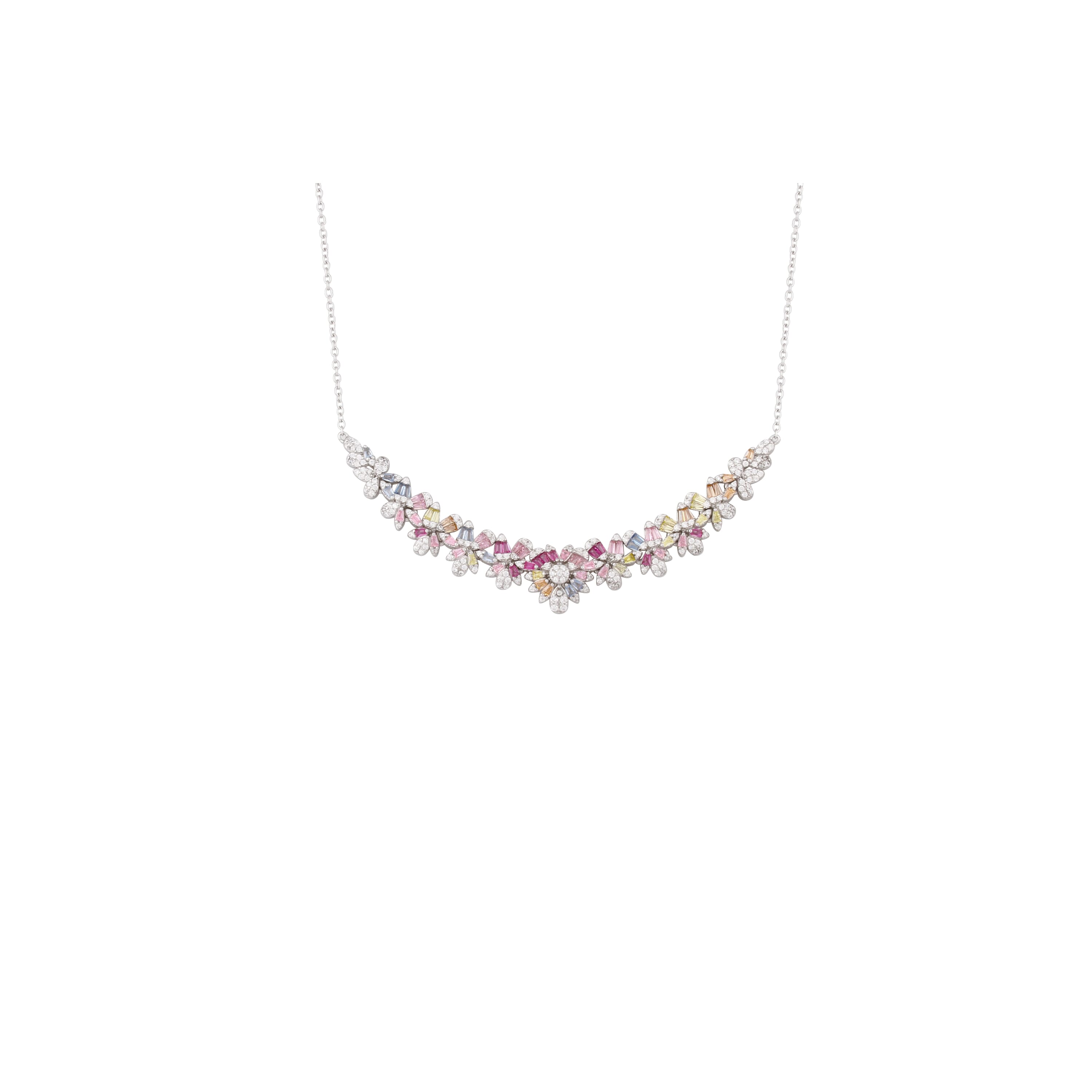 Asfour Chain Necklace In 925 Sterling Silver Stone Zircon Rectangle And Round