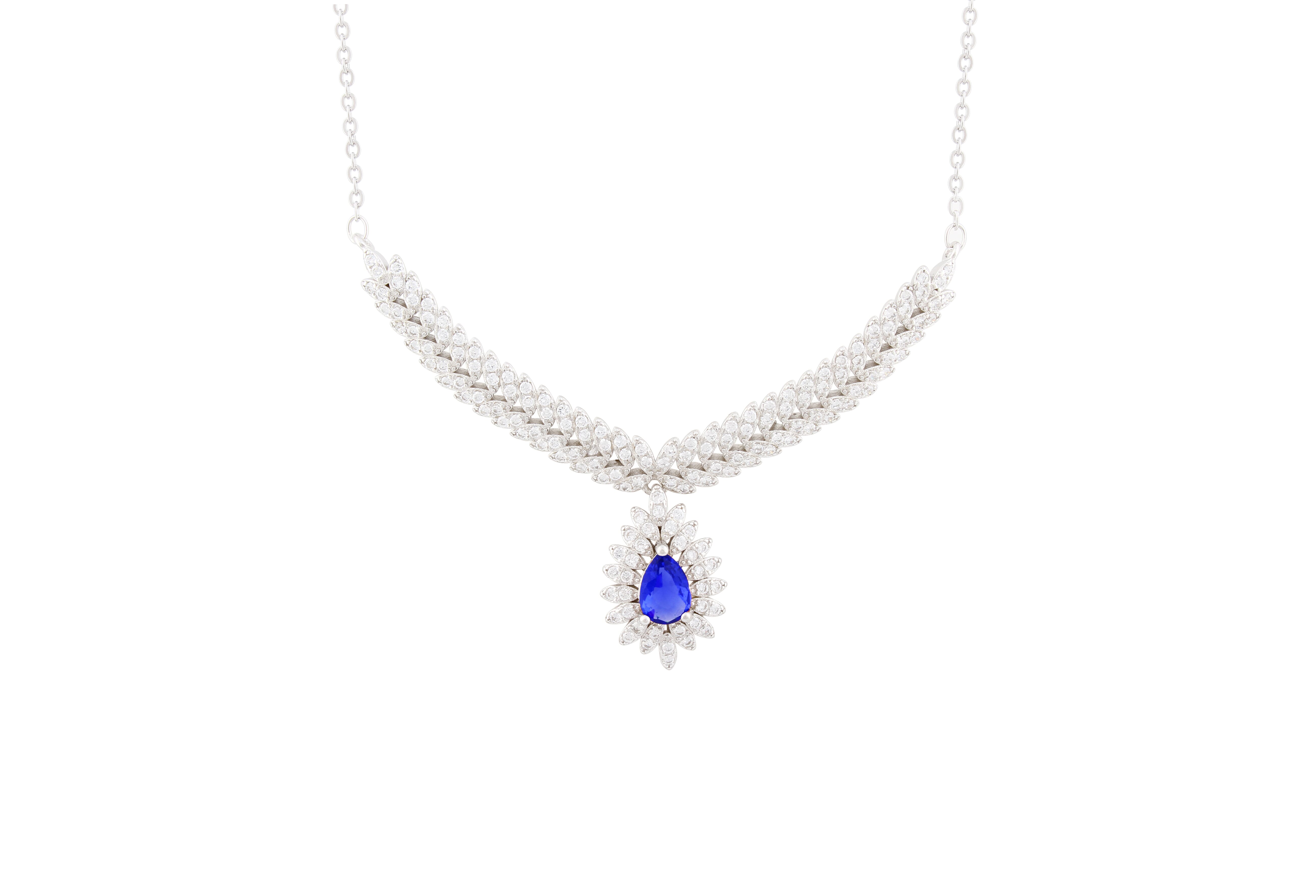 Introducing the "Asfour Chain Necklace With Blue Pear Design," a stunning piece that harmoniously blends the brilliance of Asfour crystals with a captivating blue pear-shaped pendant. Elevate your style with this exquisite necklace, designed to add a touch of glamour and sophistication to any occasion.