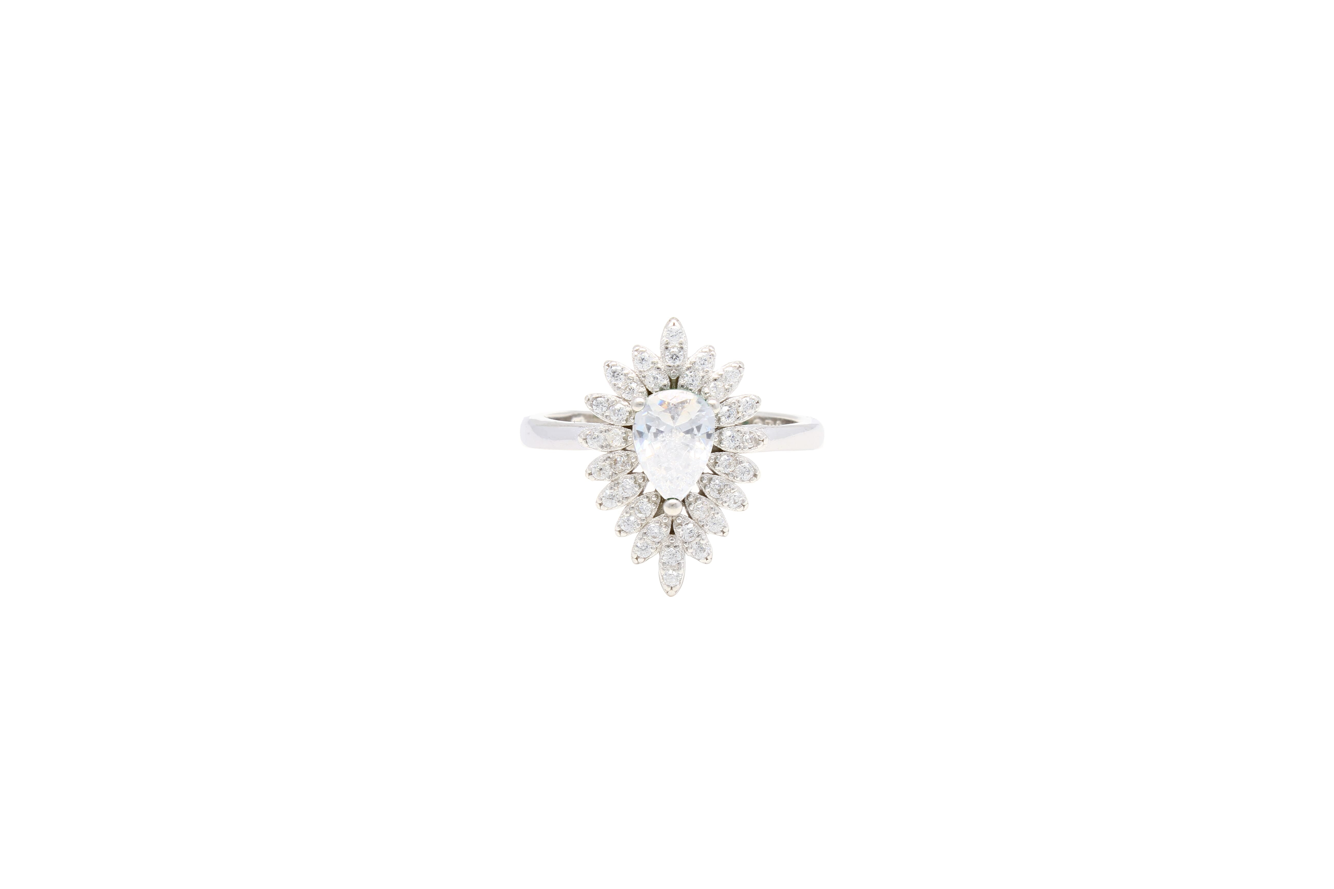 Asfour Cluster Ring With Pear Design Inlaid With Zircon In 925 Sterling Silver RR0331-W-7