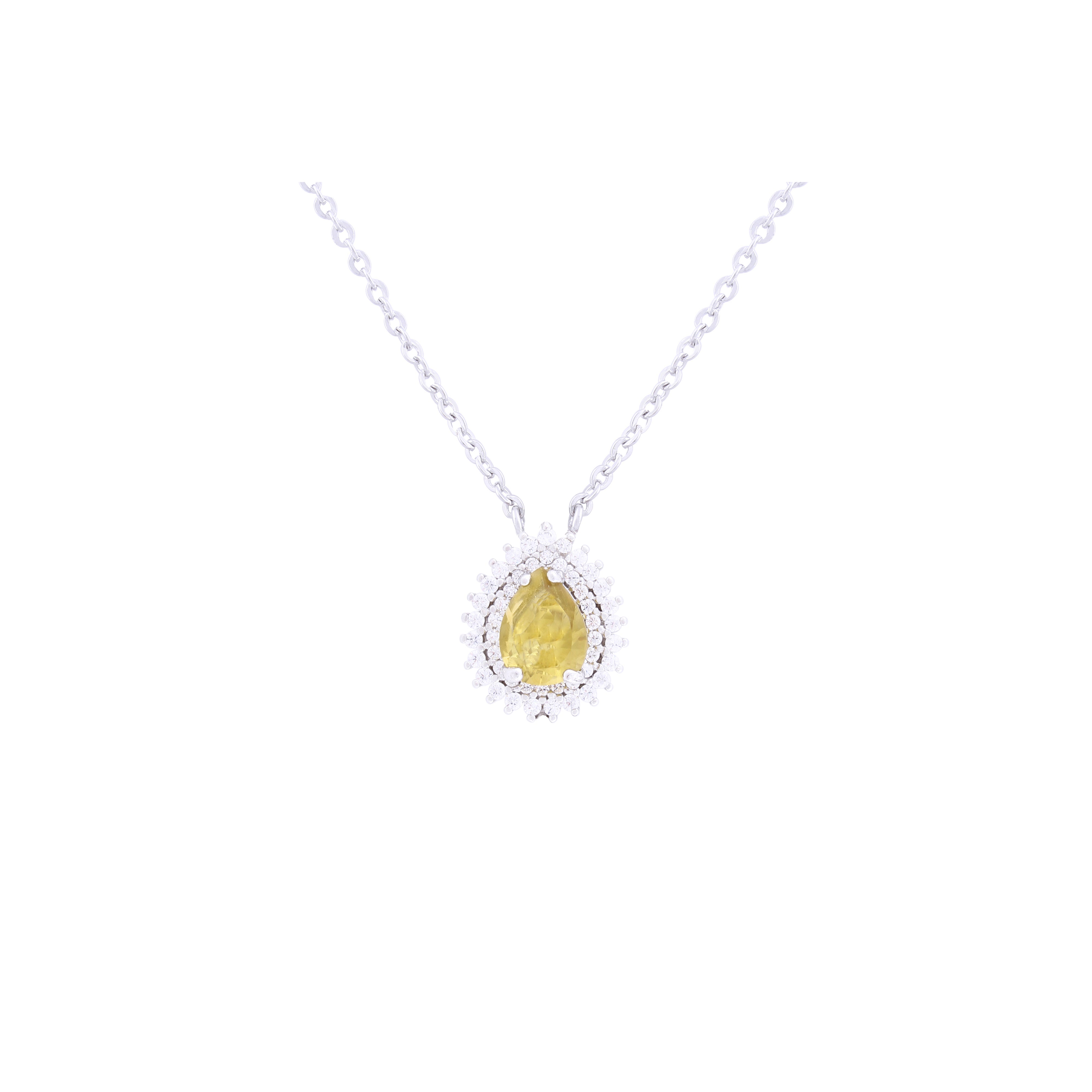 عصفور كريستال سلسلة فضة عيار 925 بتصميم كمثري اصفر مرصع بالزركون - NE0059-Y