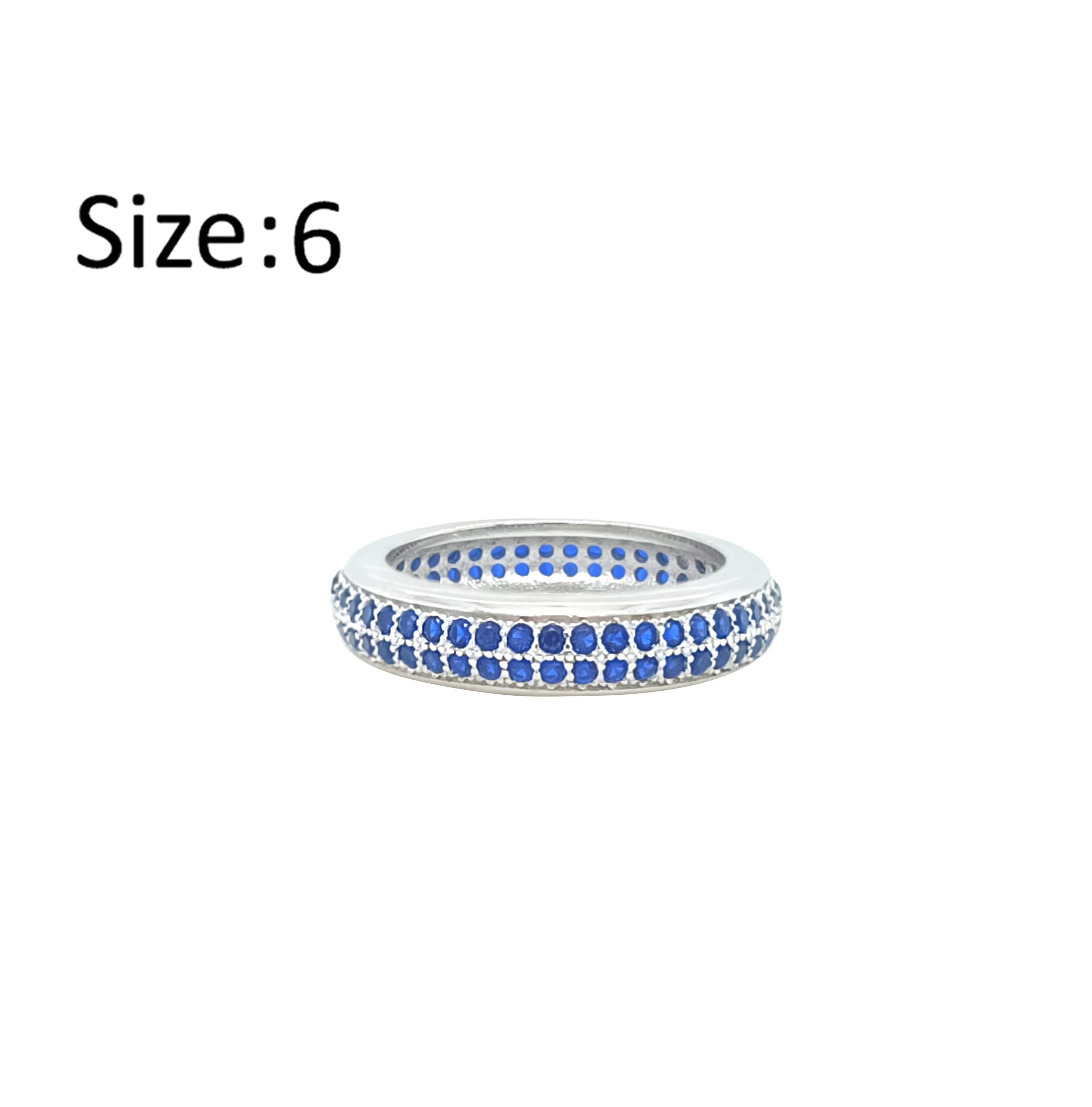 عصفور كريستال دبلة فضة عيار 925 بتصميم صفين مرصعين بفصوص زركون زرقاء - RD0196-B-6