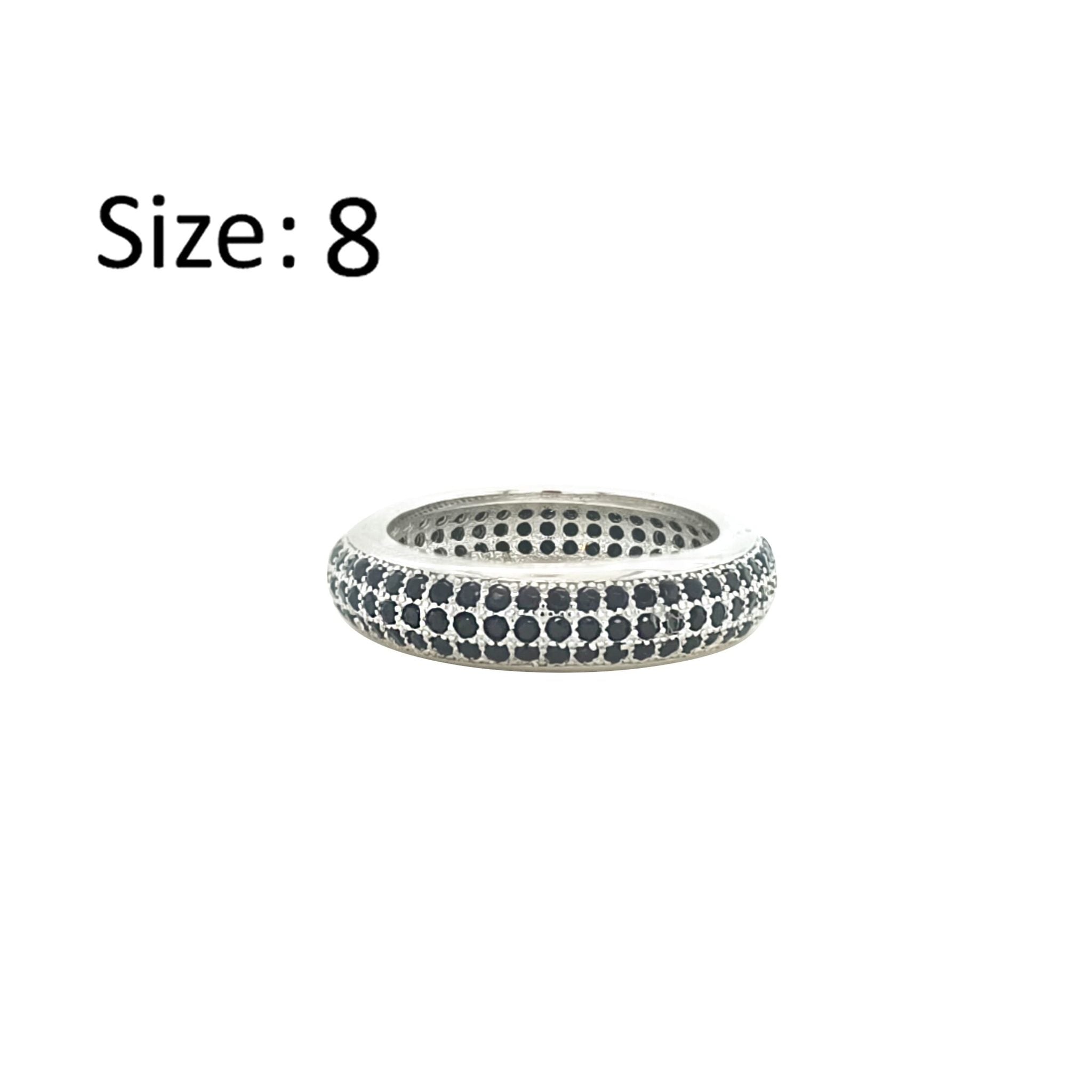 عصفور كريستال دبلة فضة عيار 925 بتصميم 3 صفوف مرصعة بفصوص زركون سوداء - RD0197-P-8
