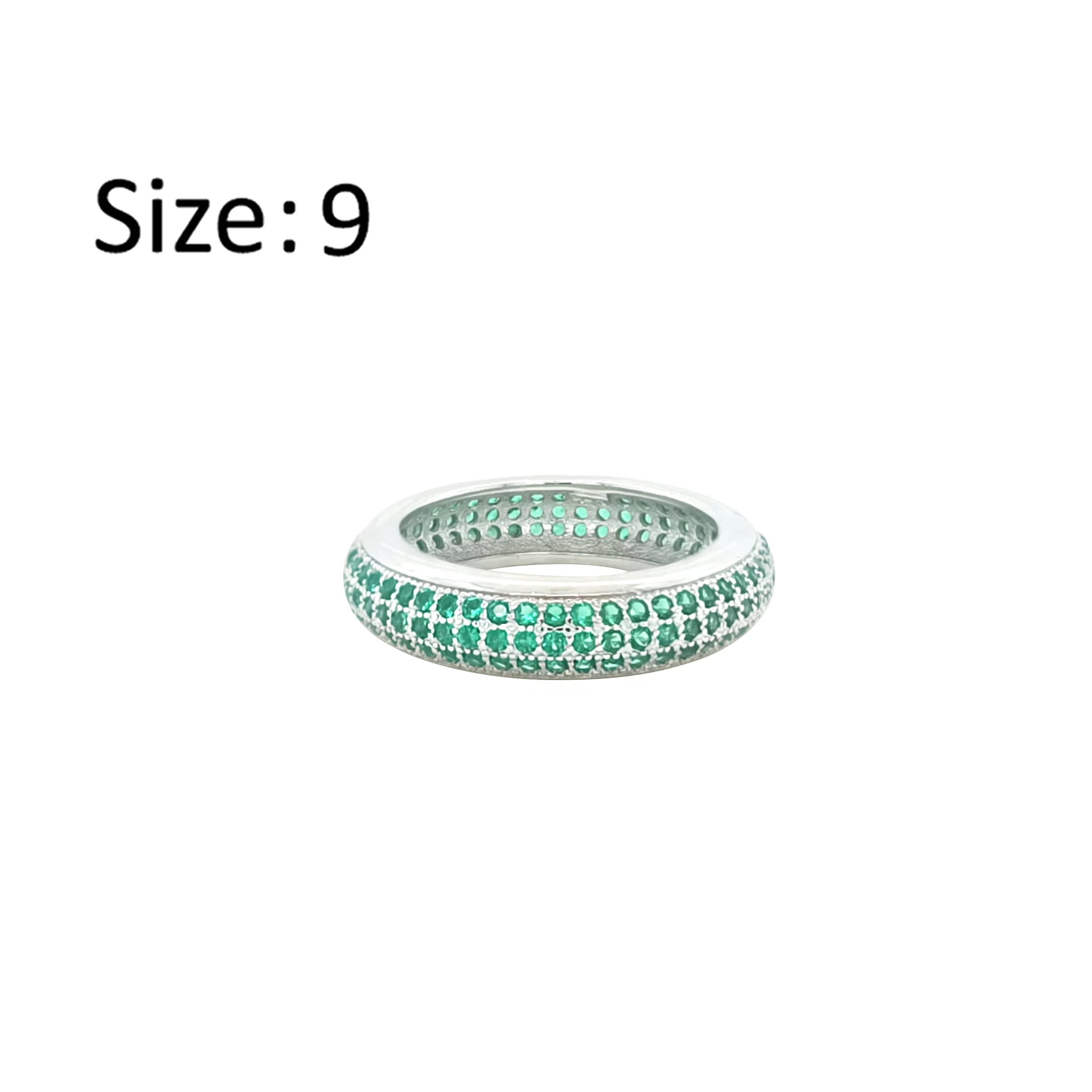 عصفور كريستال دبلة فضة عيار 925 بتصميم 3 صفوف مرصعة بفصوص زركون خضراء - RD0197-G-9