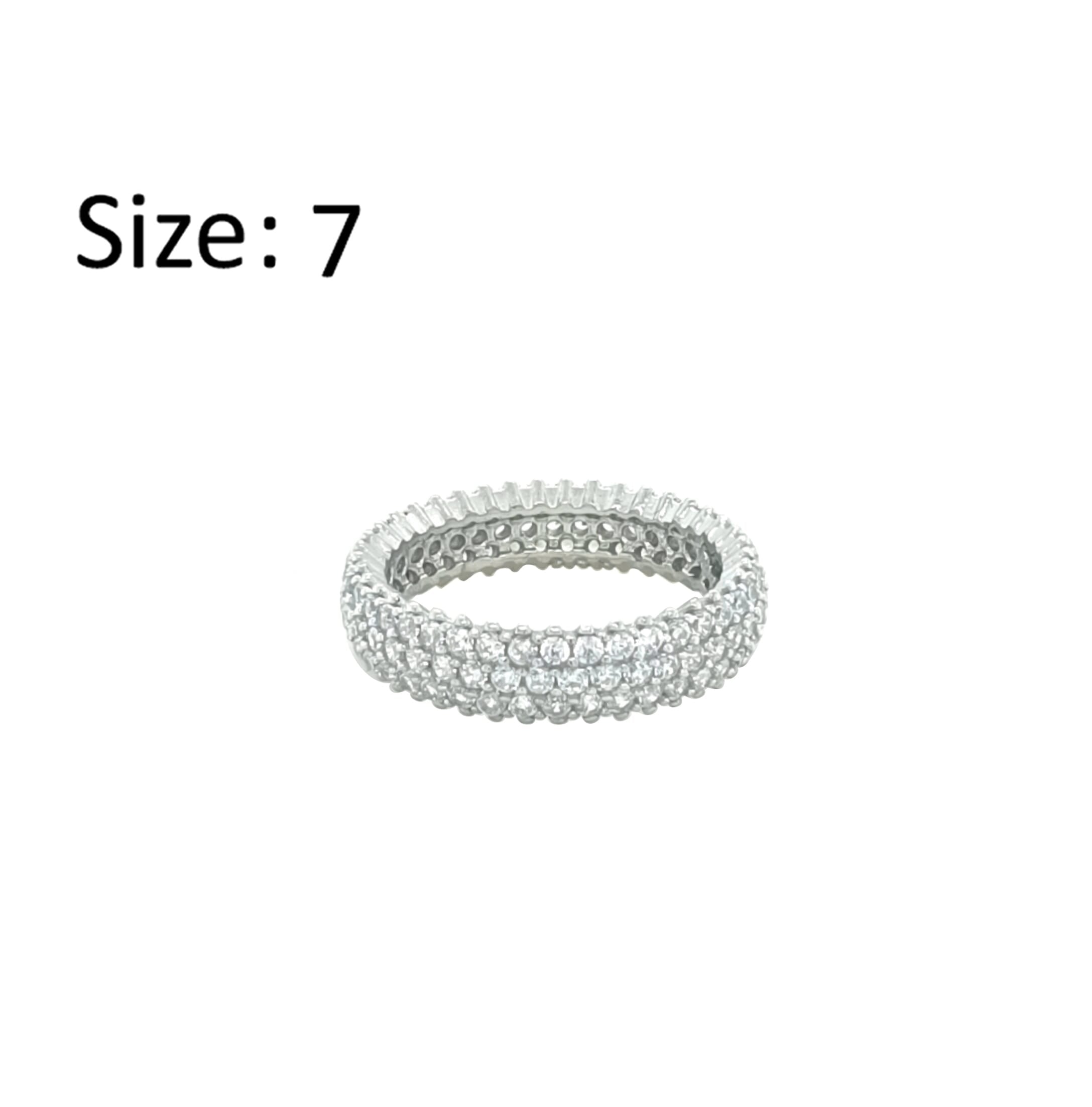 عصفور كريستال دبلة فضة عيار 925 بتصميم 3 صفوف مرصعة بفصوص الزركون - RD0189-7