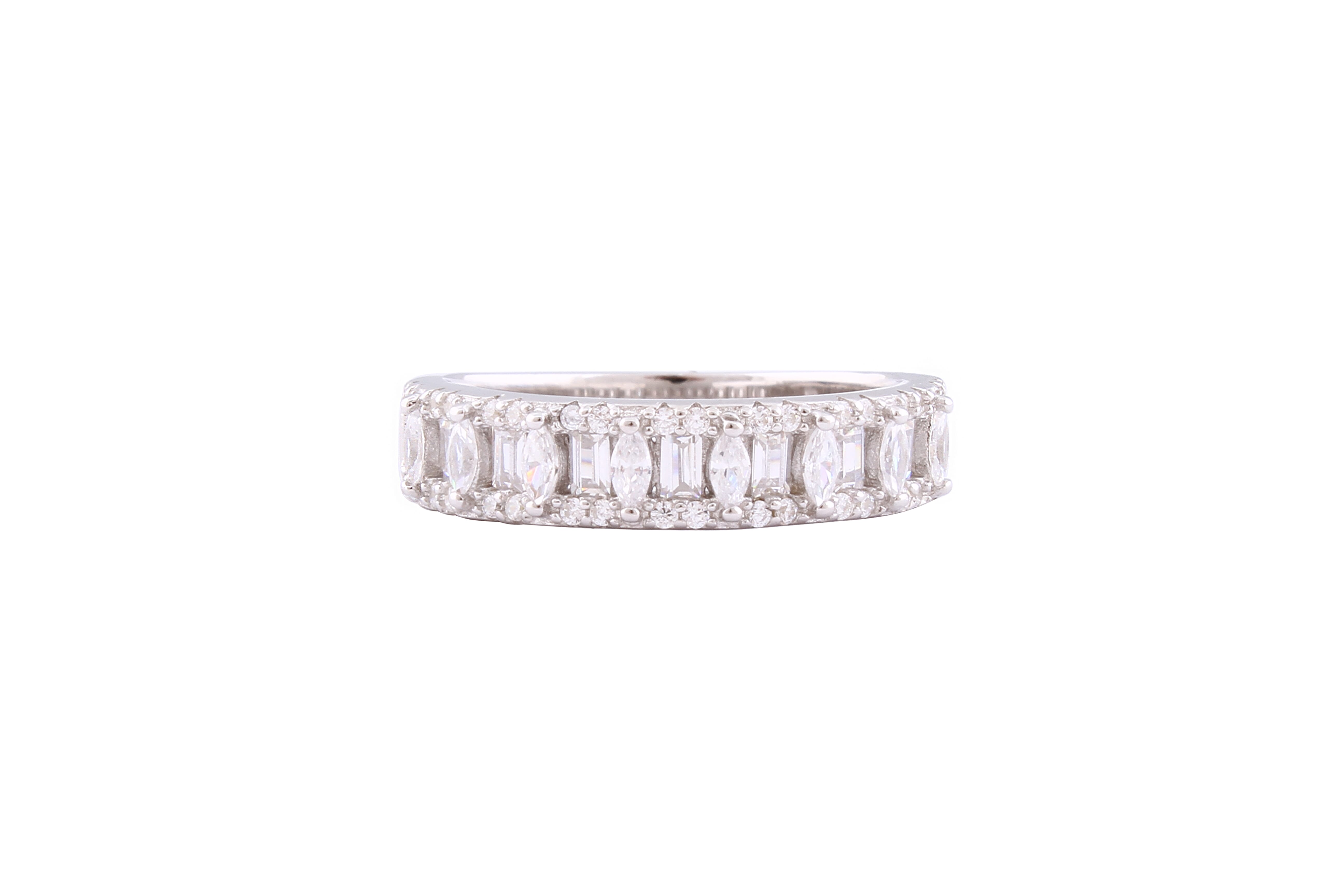 Asfour Crystal Band Ring With Baguette & Marquise Zircon Stones In 925 Sterling Silver-RD0155-7