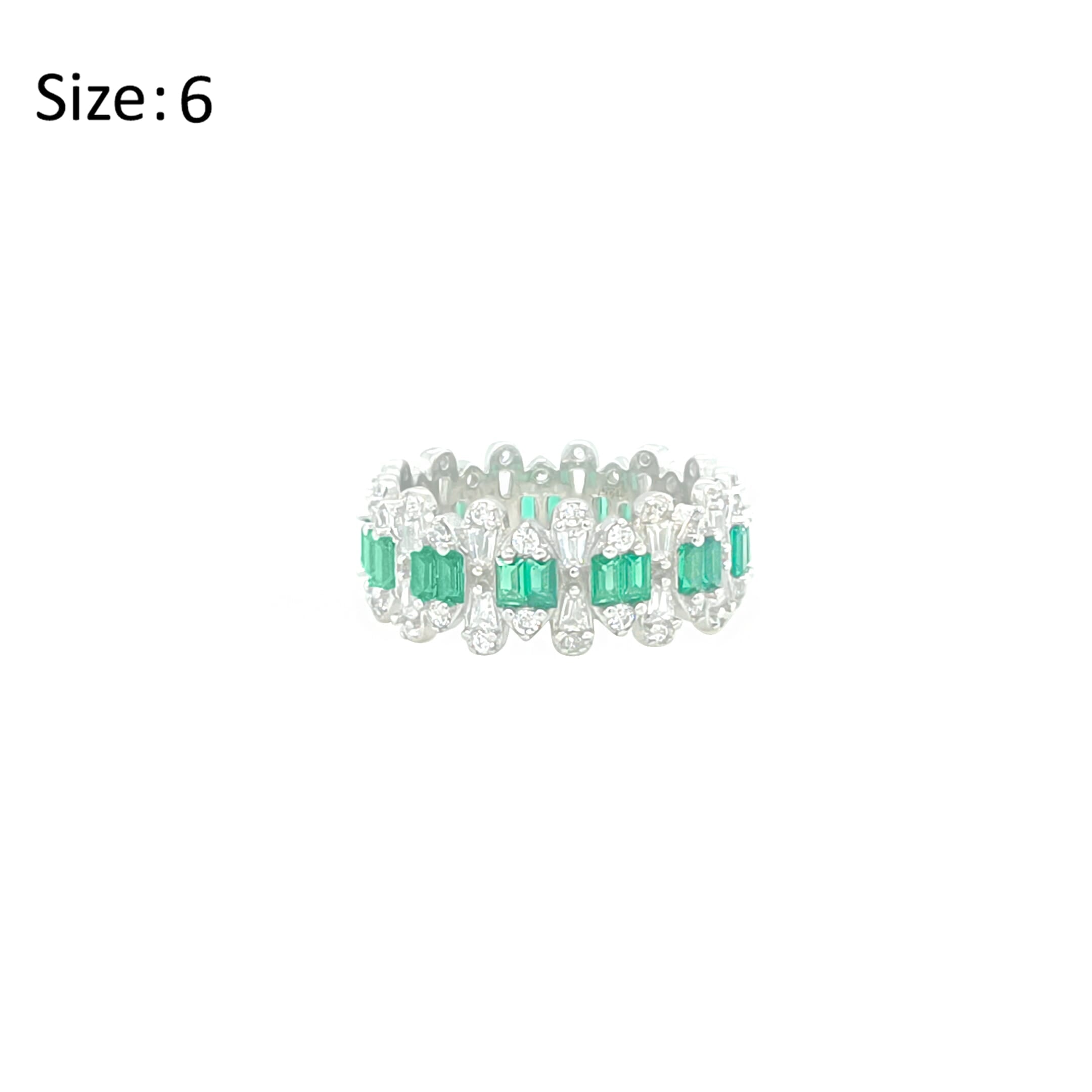 Asfour Crystal Band Ring With Emerald Art Deco Design In 925 Sterling Silver-RD0183-WG-6