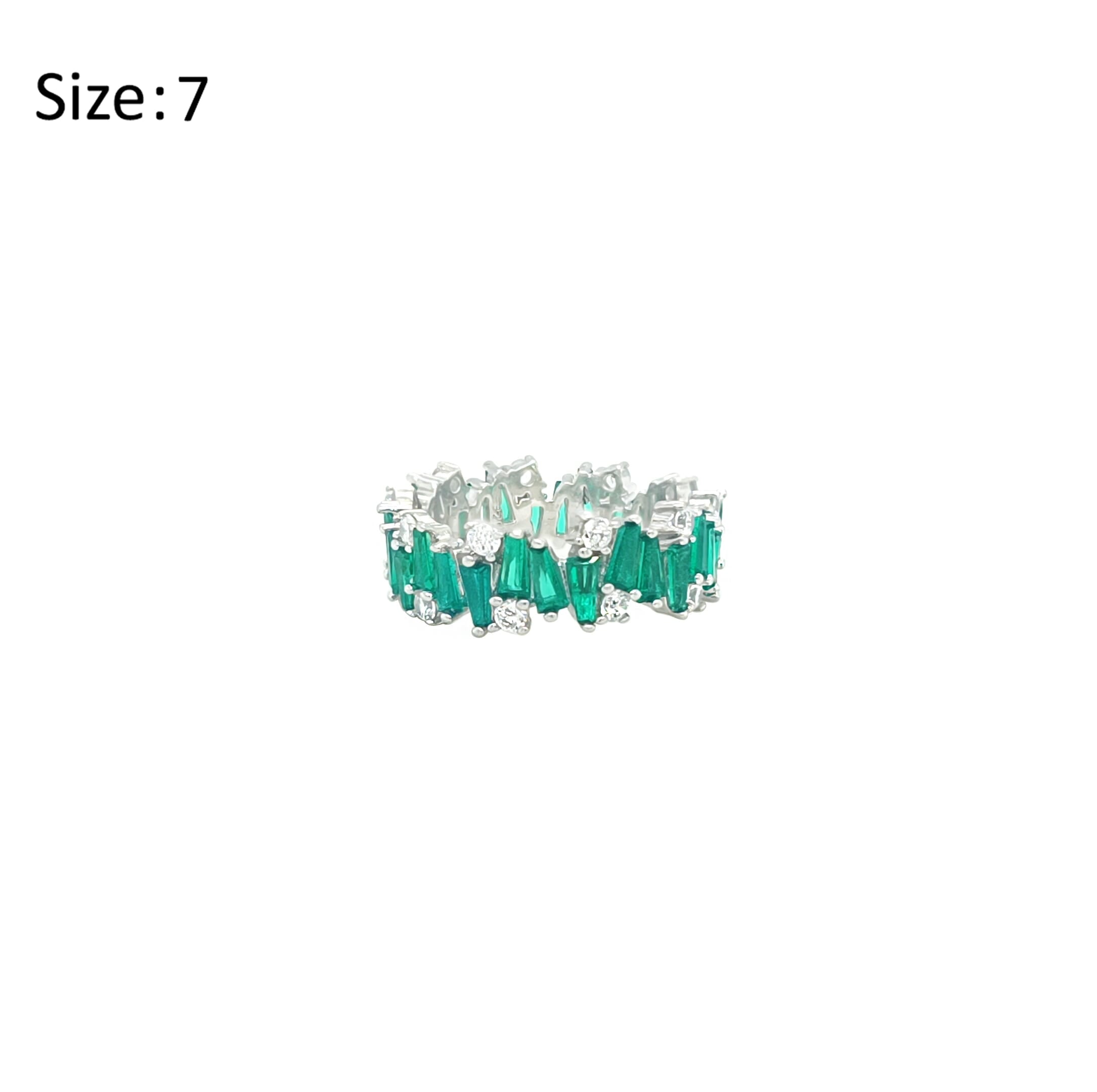 Asfour Crystal Band Ring With Emerald Baguette Stones In 925 Sterling Silver-RD0180-G-7
