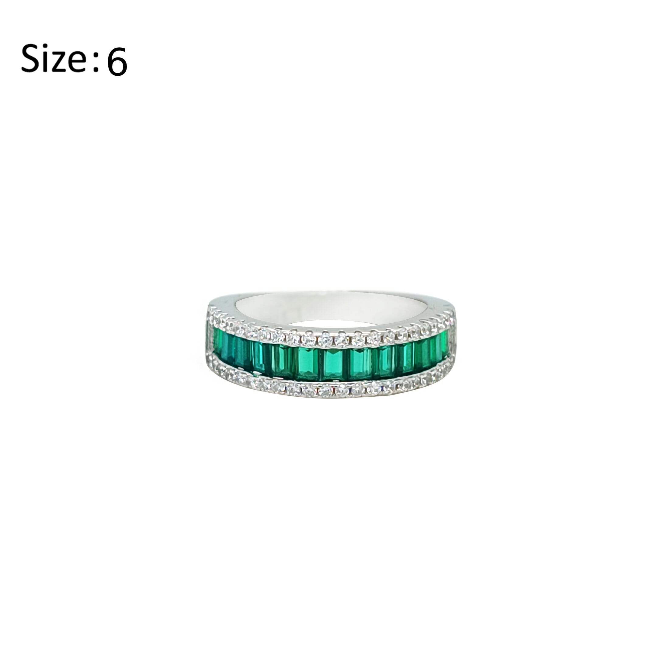 Asfour Crystal Band Ring With Emerald Zircon Stones In 925 Sterling Silver-RD0087-G-6