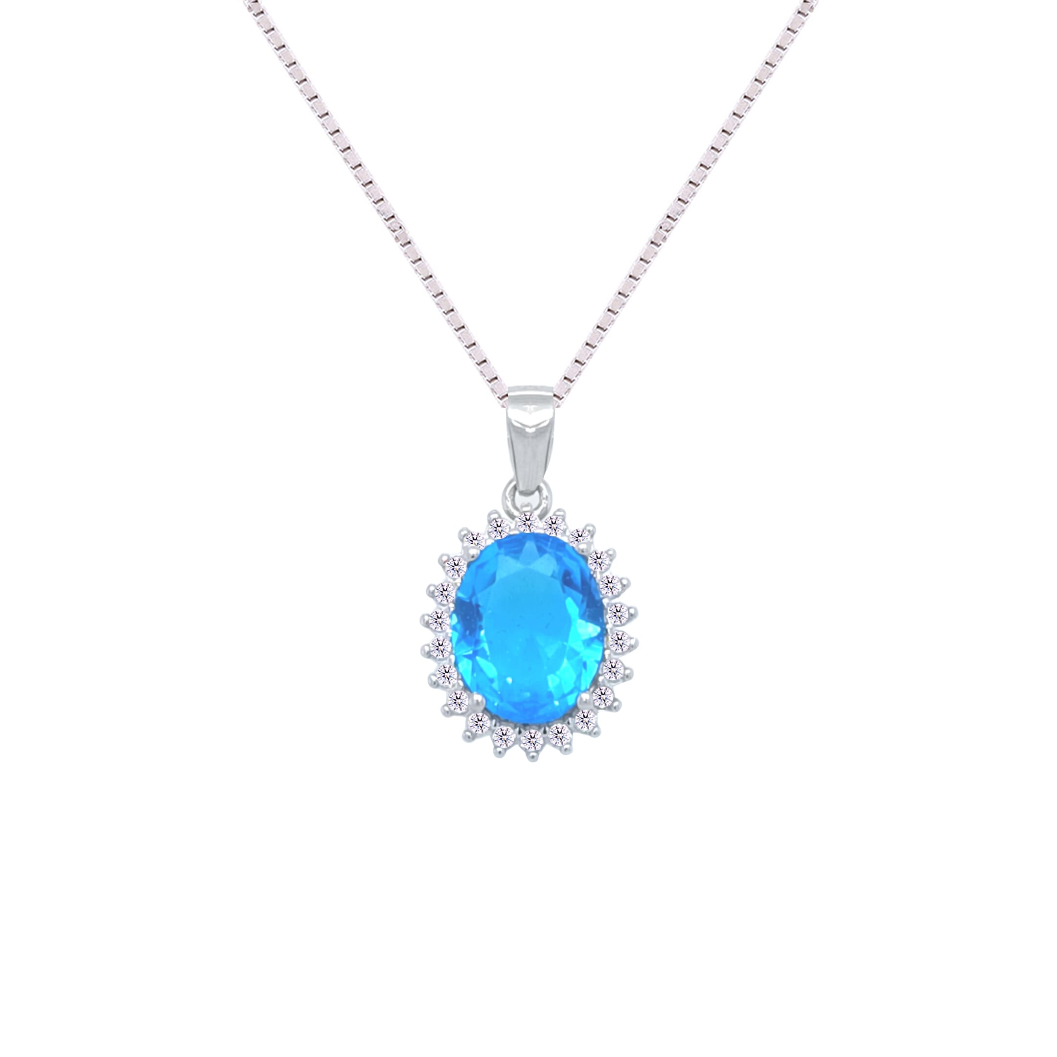 عصفور كريستال سلسلة فضة عيار 925 بتصميم بيضاوي اكوامارين مرصع بالزركون - NM0034-M