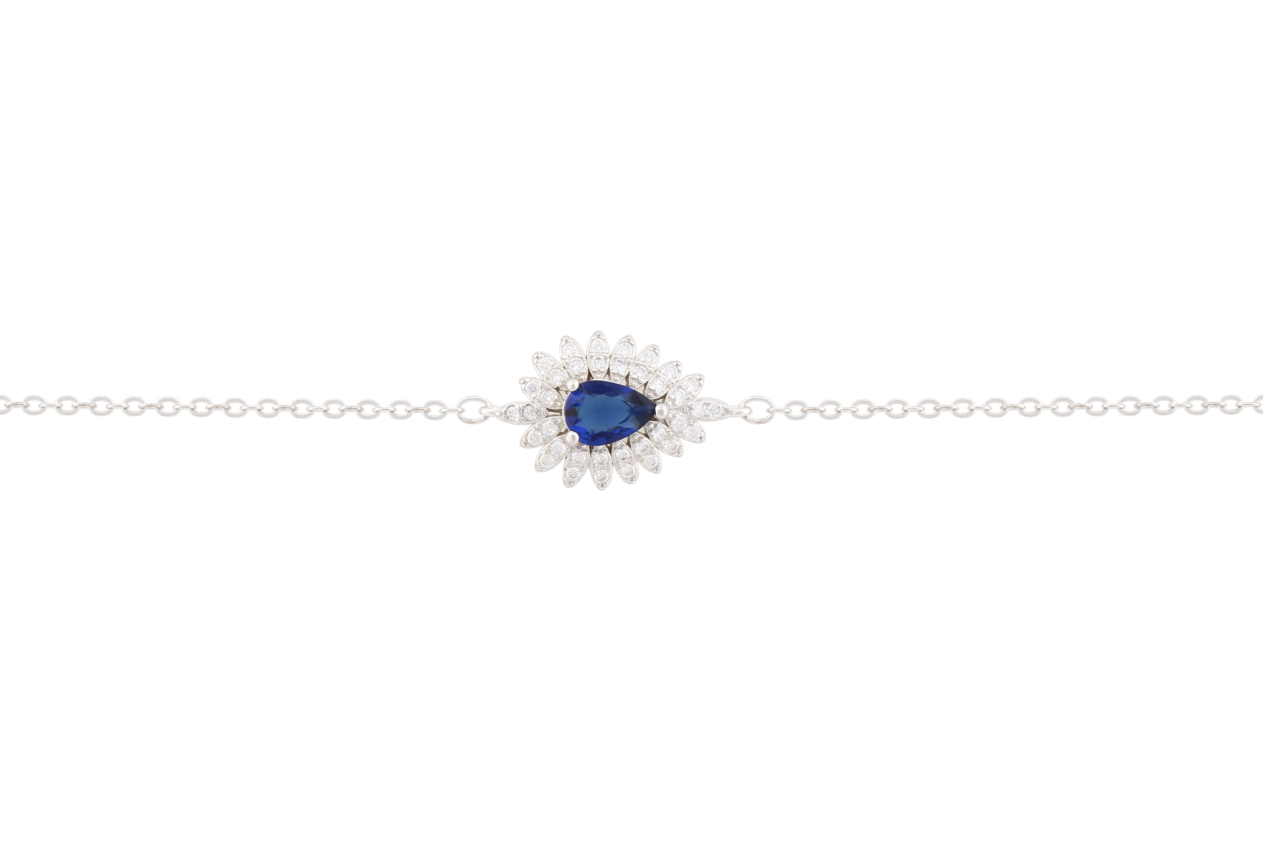 Asfour Crystal Chain Bracelet With Blue Pear Design In 925 Sterling Silver BR0508-WB
