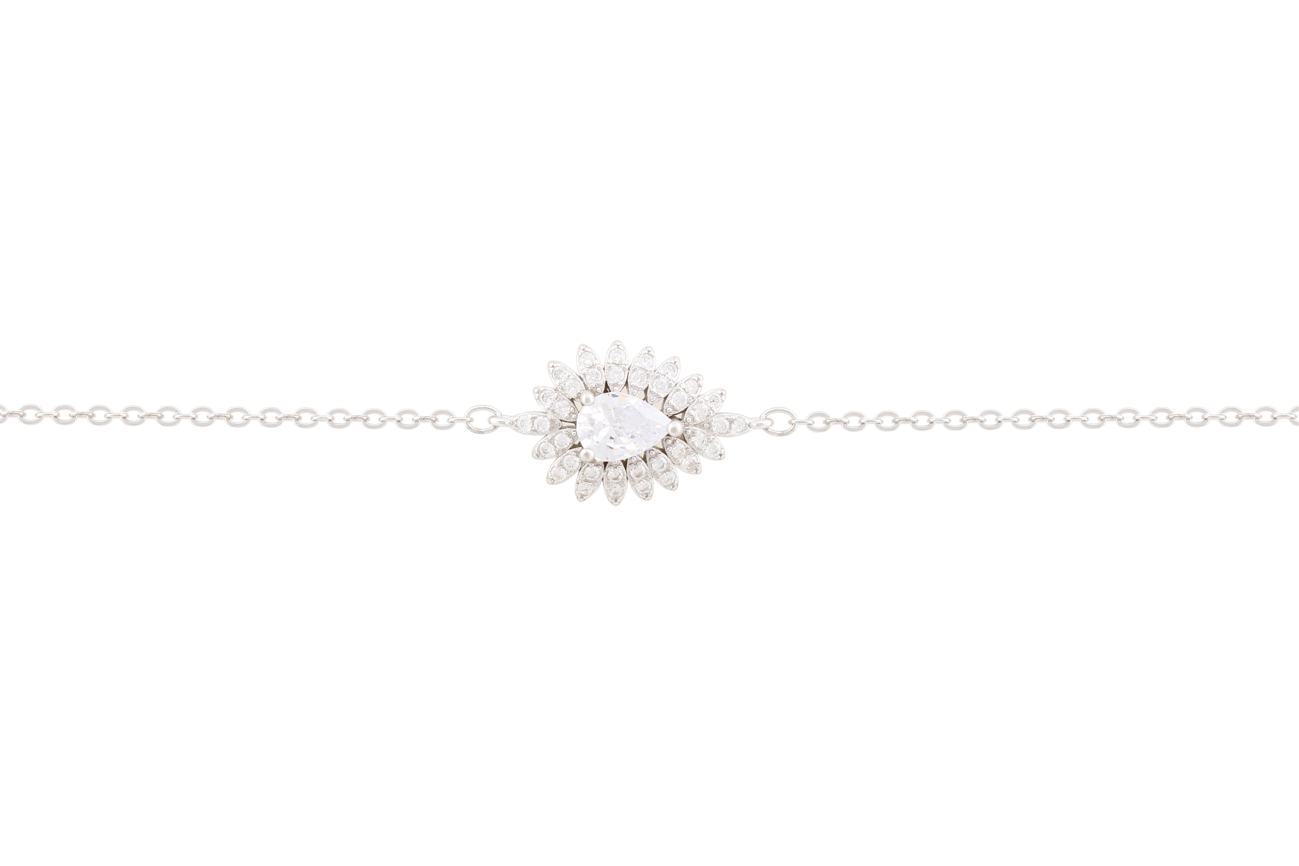 Asfour Crystal Chain Bracelet With Pear Design In 925 Sterling Silver BR0508-W