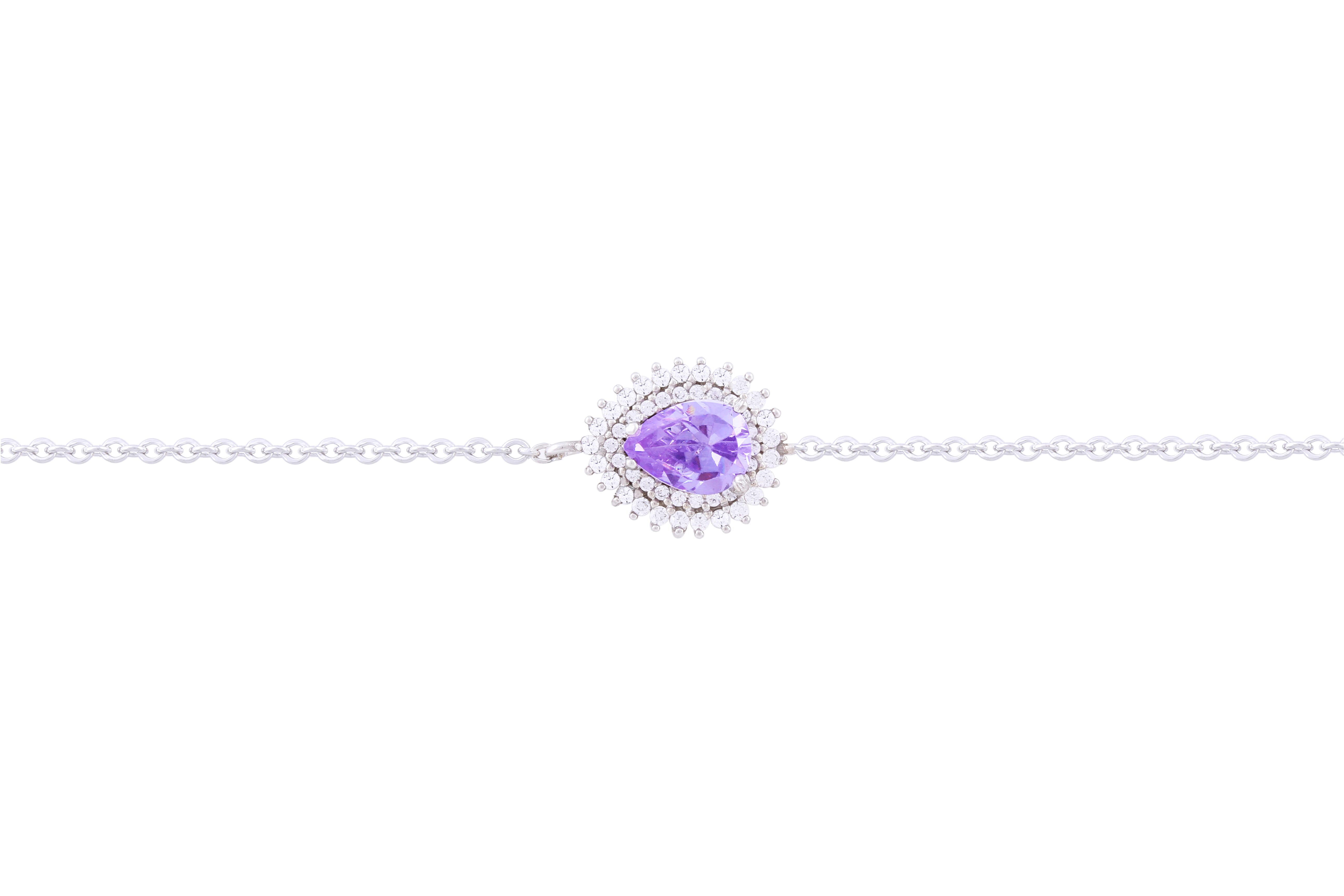 Asfour Crystal Chain Bracelet With Purple Pear Design In 925 Sterling Silver BE0015-N