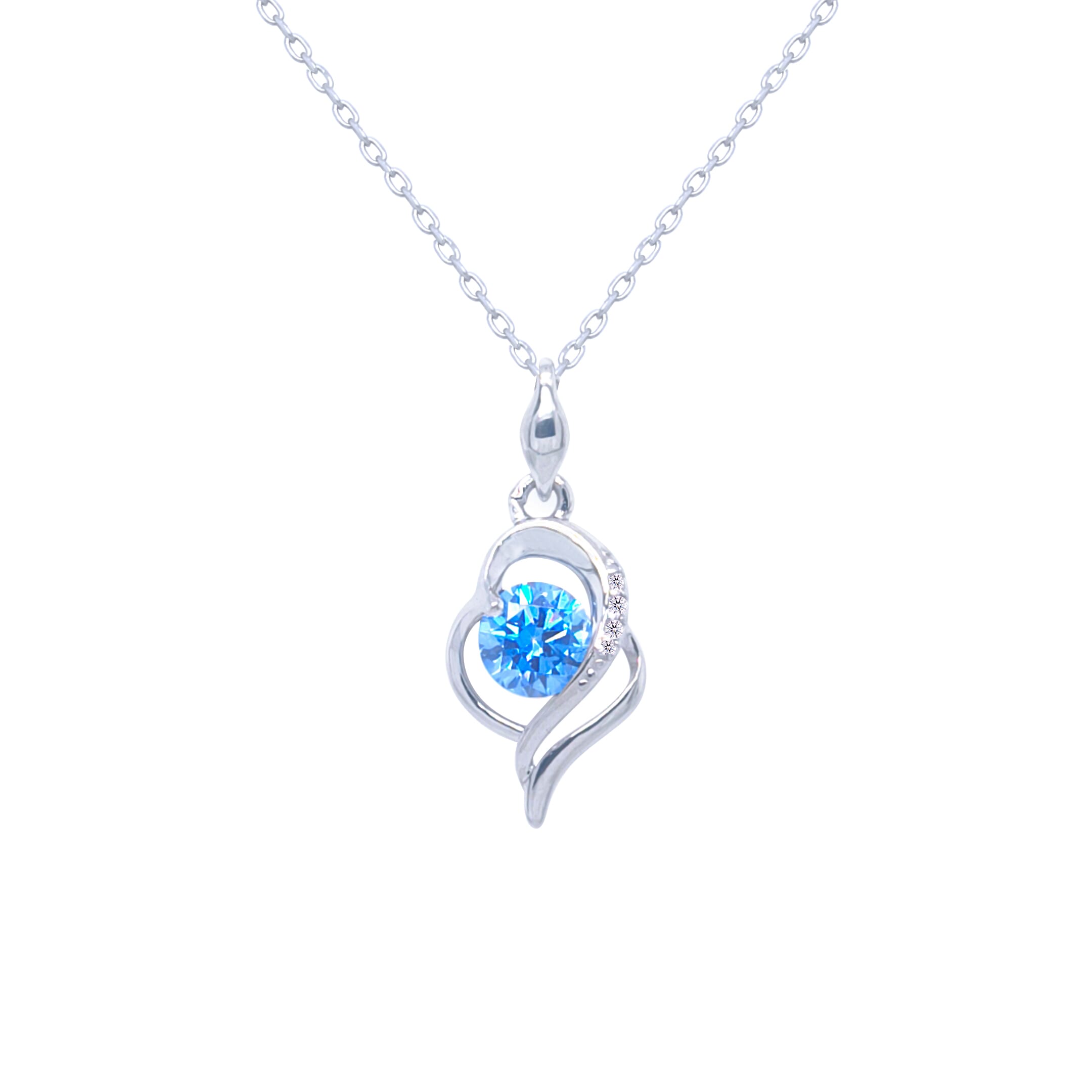 عصفور كريستال سلسلة فضة عيار 925 بتصميم فني زخرفي مرصع بفص زركون اكوامارين - NM0040-M