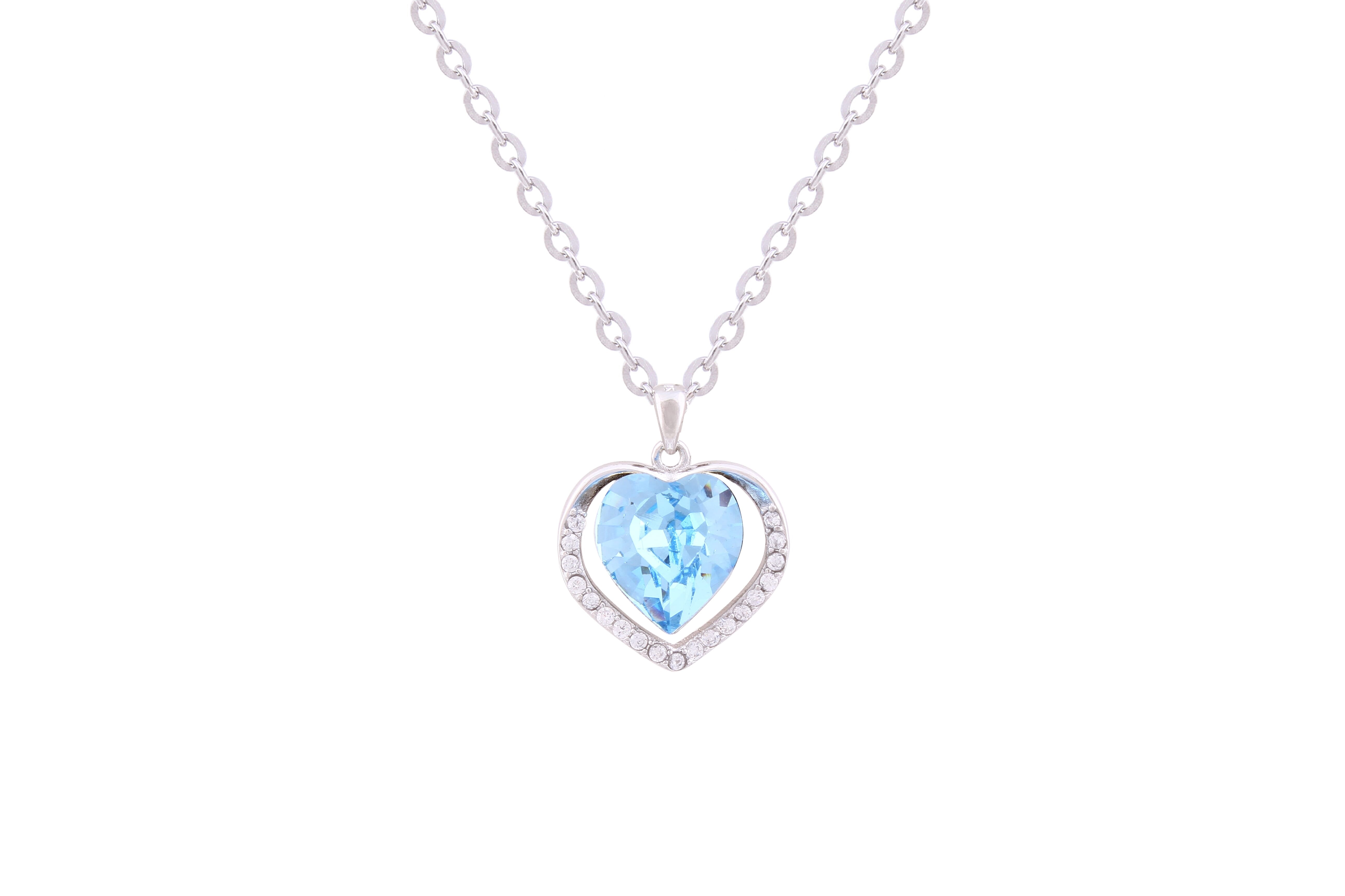 Asfour Crystal Chain Necklace With Aquamarine Heart In 925 Sterling Silver ND0221-M