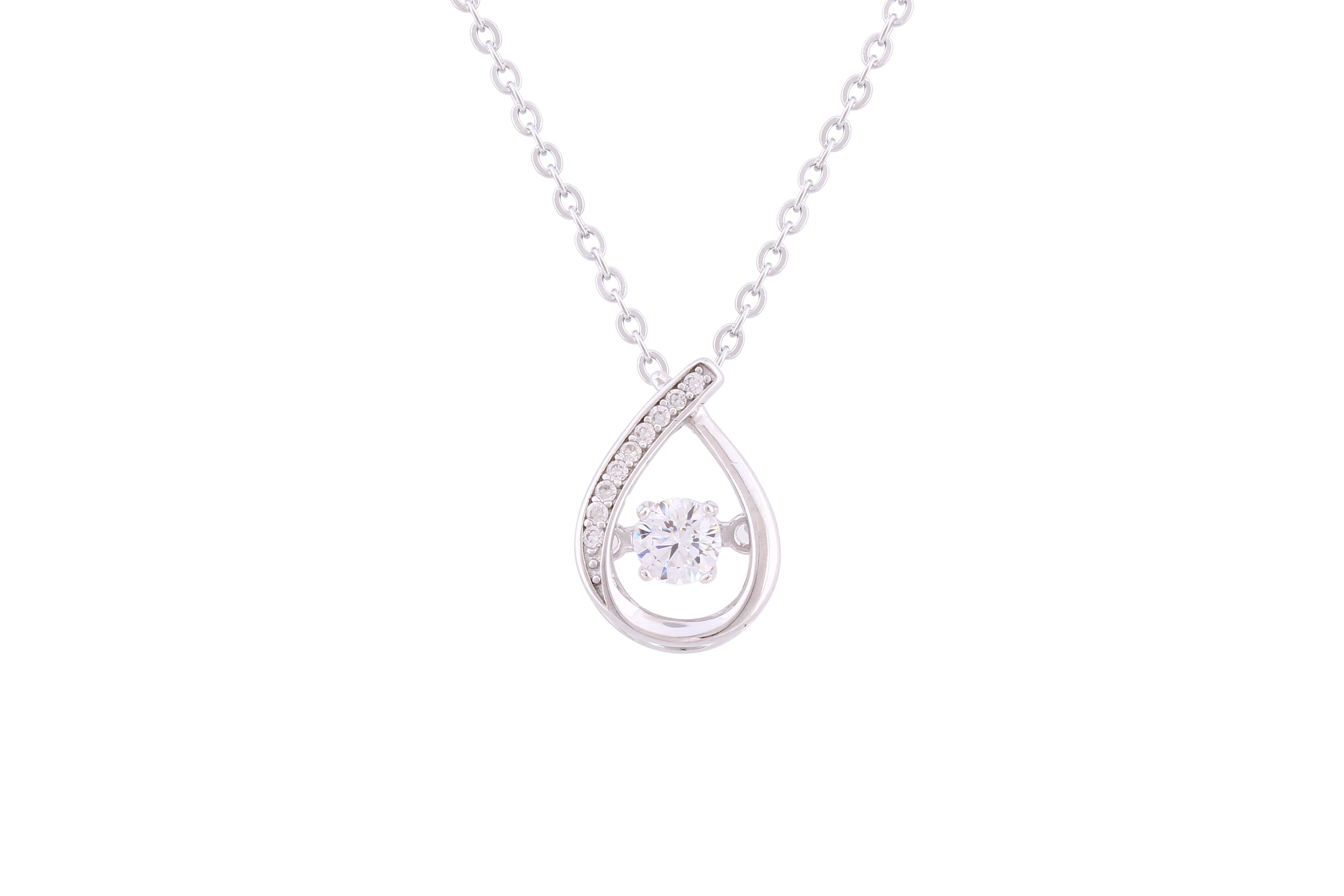 Asfour Crystal Chain Necklace With Art Deco Design & Dancing Zircon In 925 Sterling Silver ND0247