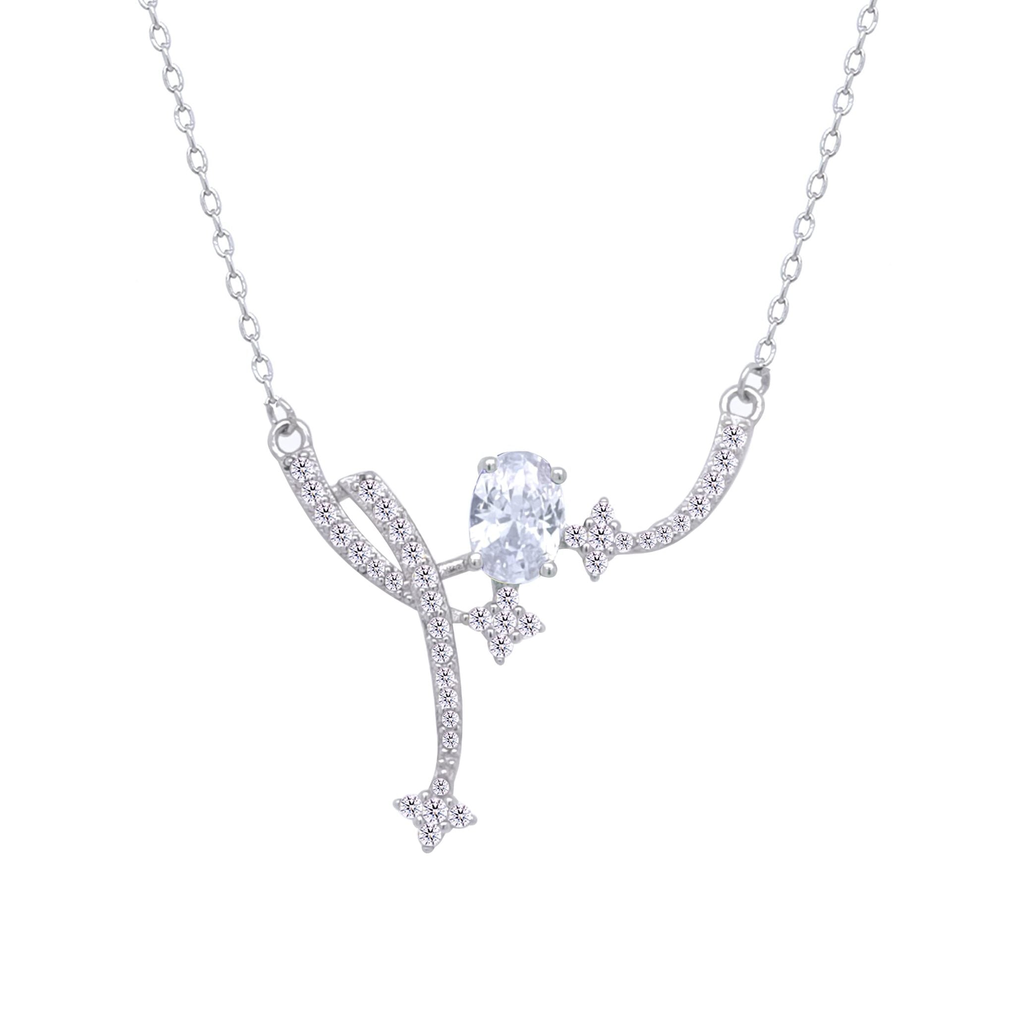 عصفور كريستال سلسلة فضة عيار 925 بتصميم فني زخرفي مرصع بالزركون - ND0455