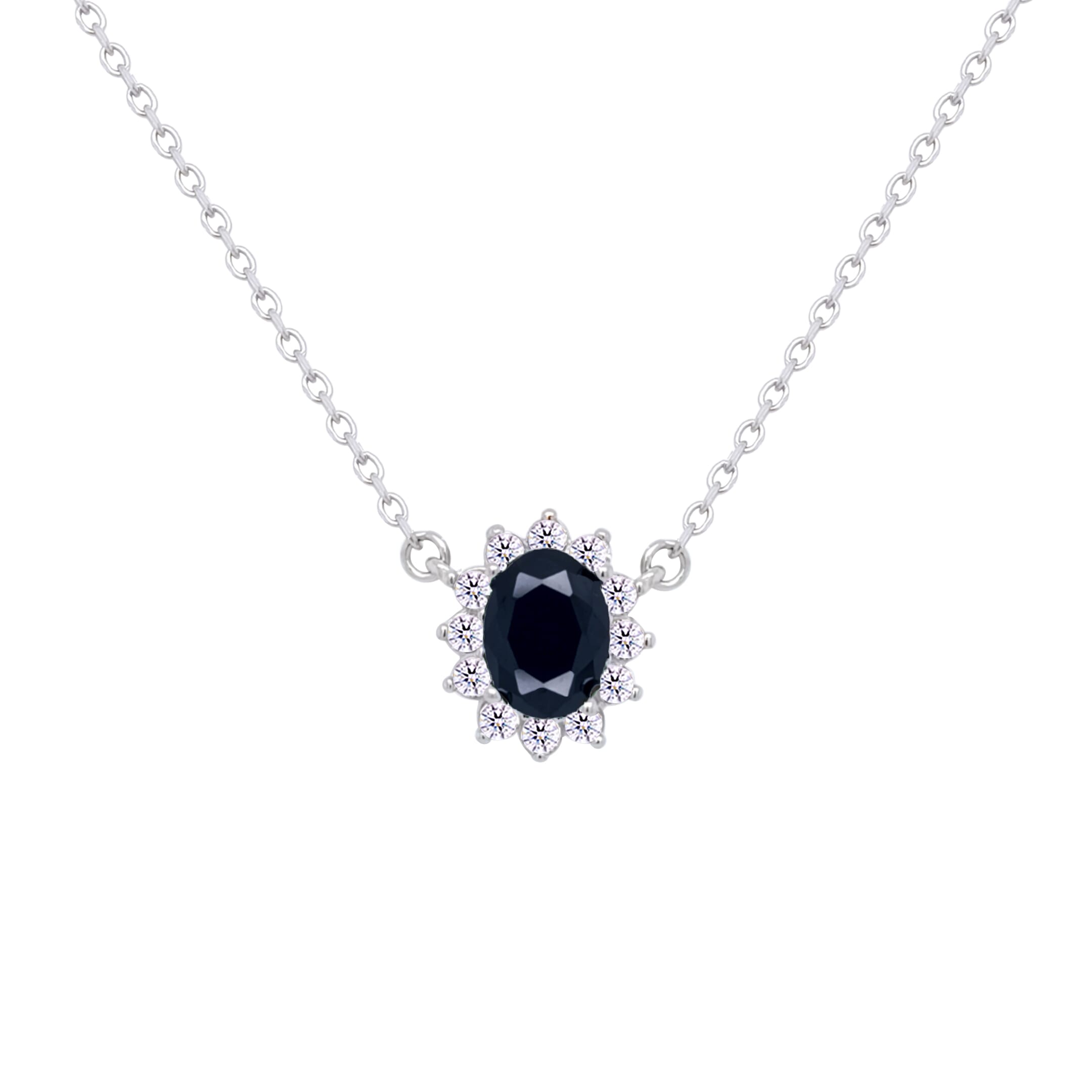 عصفور كريستال سلسلة فضة عيار 925 بتصميم بيضاوي اسود مرصع بالزركون - ND0392-P