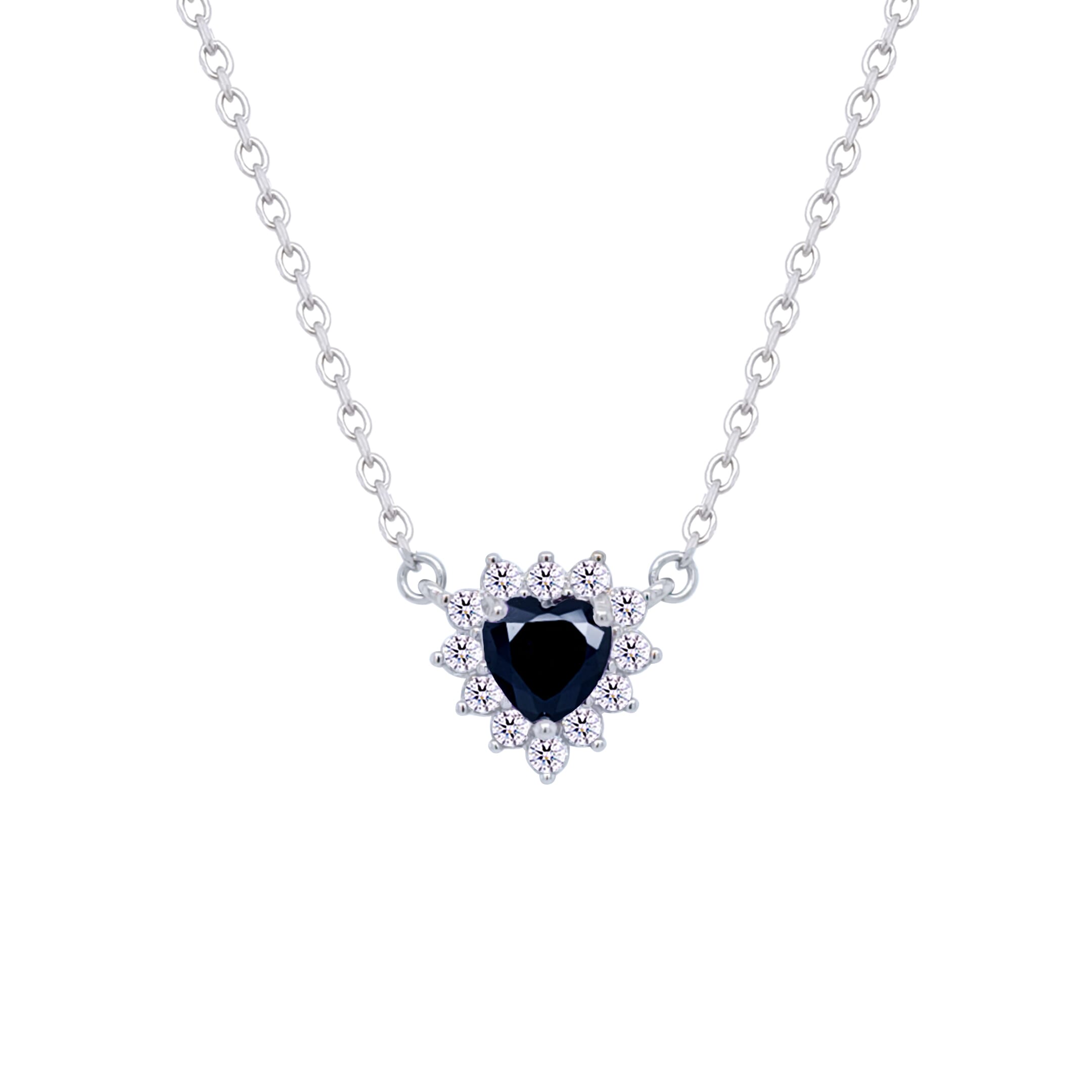 عصفور كريستال سلسلة فضة عيار 925 بتصميم قلب اسود مرصع بالزركون - ND0394-P
