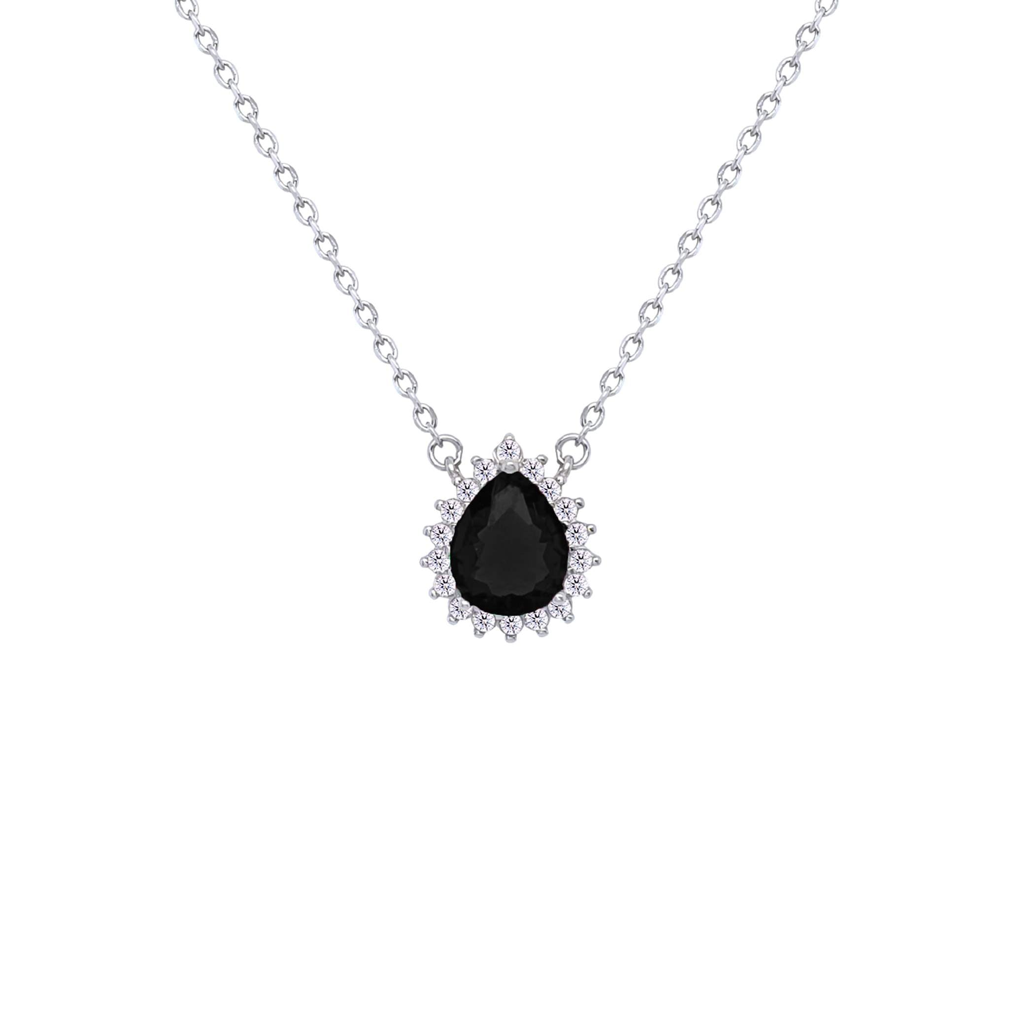 عصفور كريستال سلسلة فضة عيار 925 بتصميم كمثري اسود مرصع بالزركون - ND0396-P