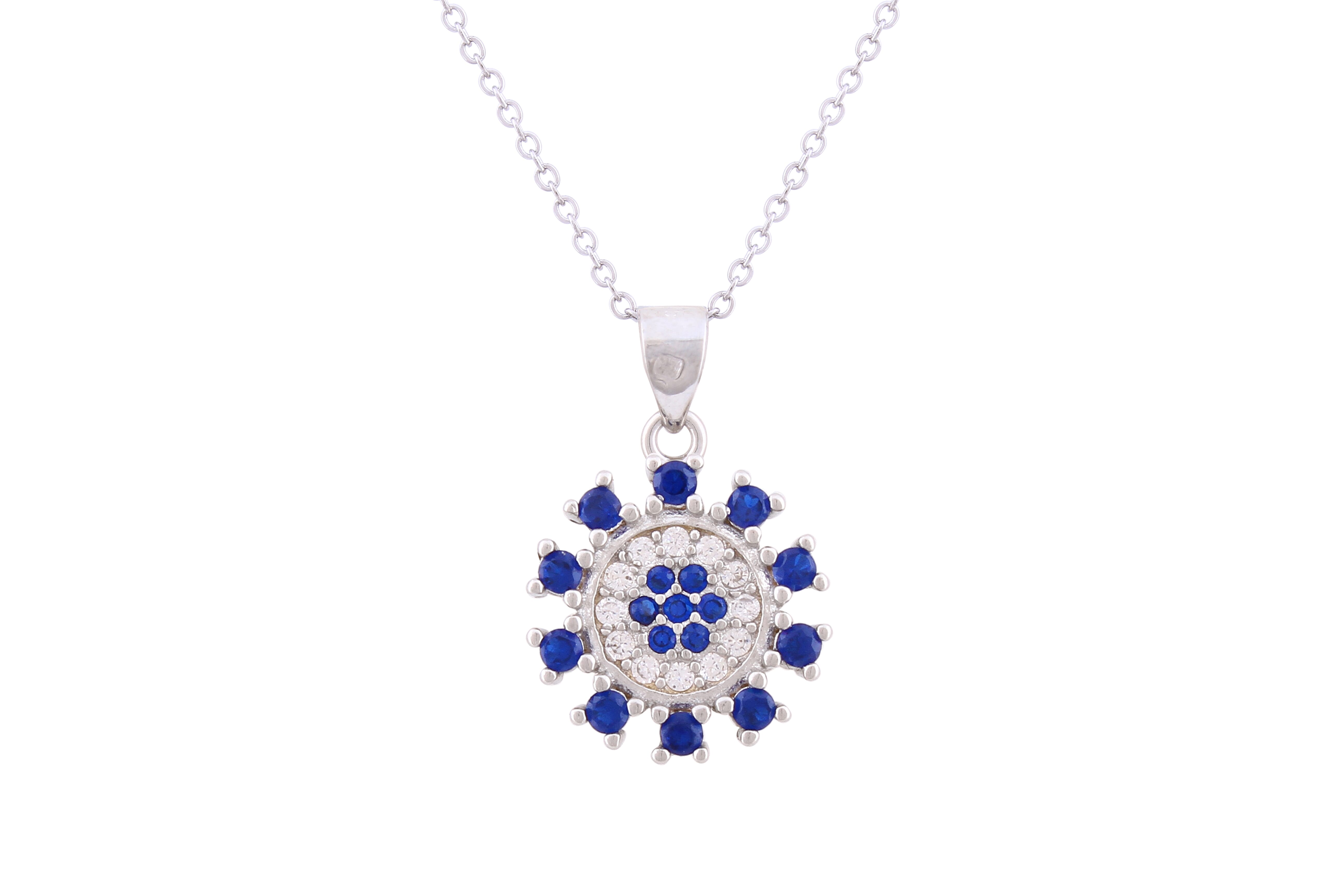 Asfour Crystal Chain Necklace With Blue & Clear Round Pendant In 925 Sterling Silver ND0213-WB