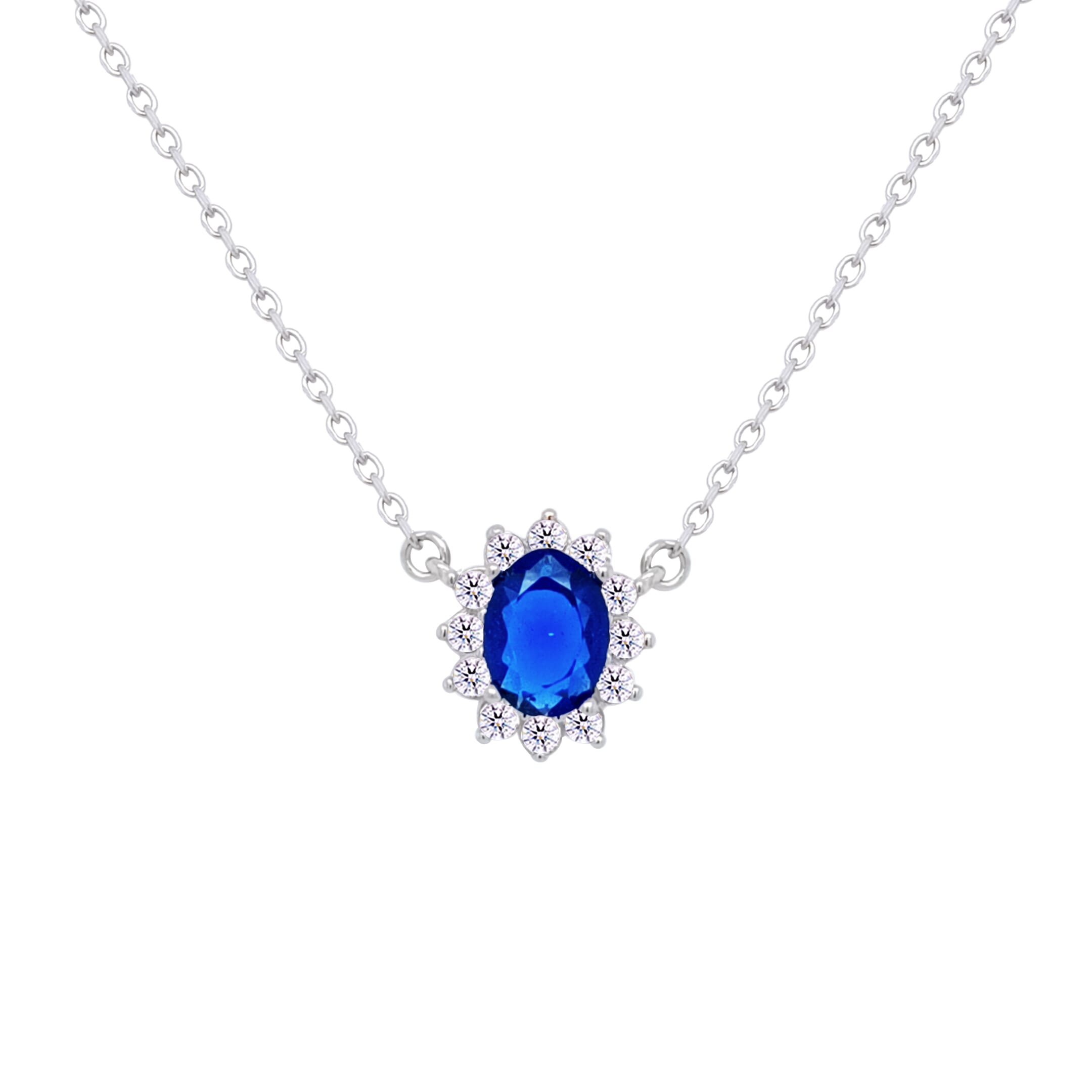 عصفور كريستال سلسلة فضة عيار 925 بتصميم بيضاوي ازرق مرصع بالزركون - ND0392-B