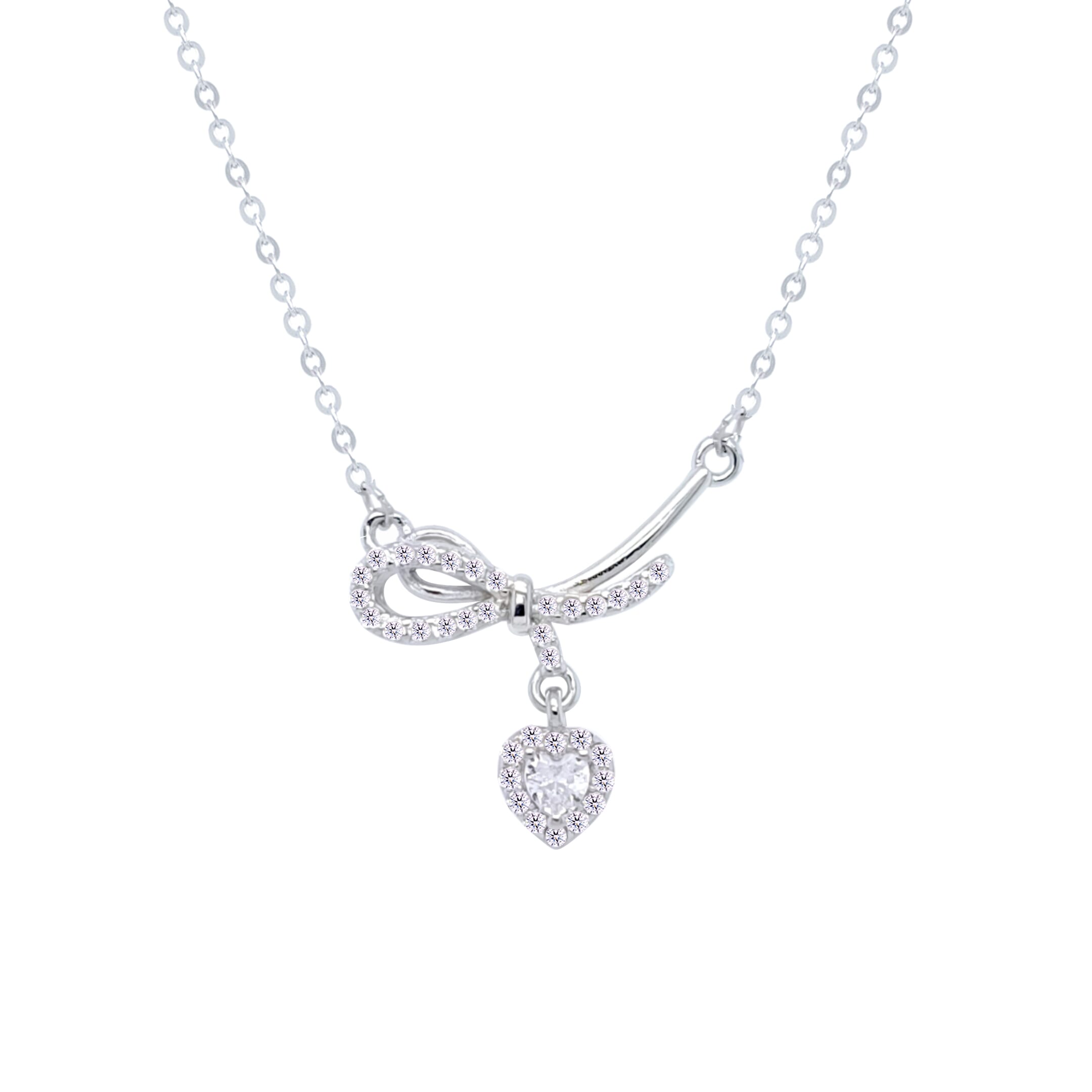 عصفور كريستال سلسلة فضة عيار 925 بتصميم قلب و فيونكة مرصعة بالزركون - ND0415