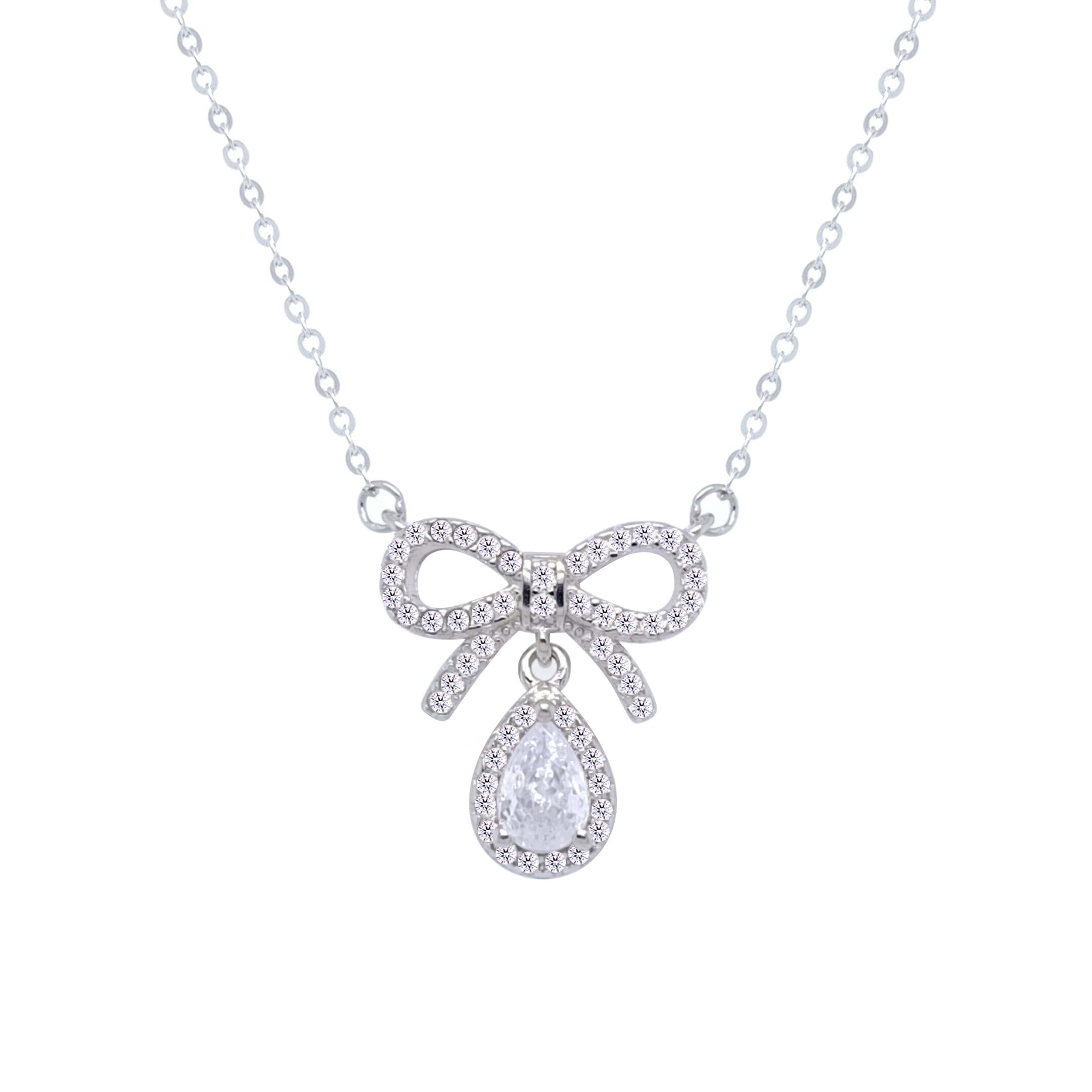 عصفور كريستال سلسلة فضة عيار 925 بدلاية علي شكل فيونكة مرصعة بالزركون - ND0416