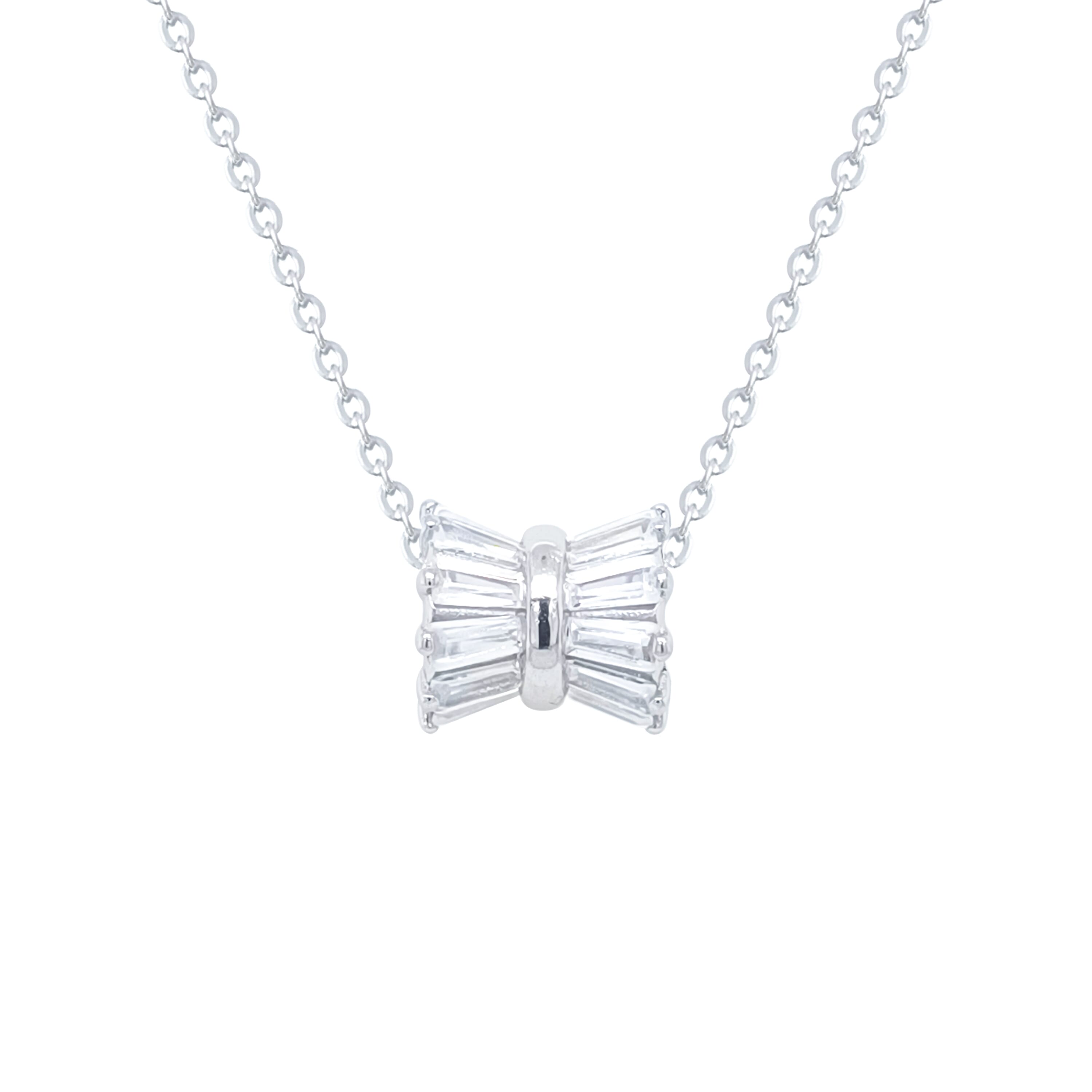 عصفور كريستال سلسلة فضة عيار 925 علي شكل فيونكة مرصعة بالزركون