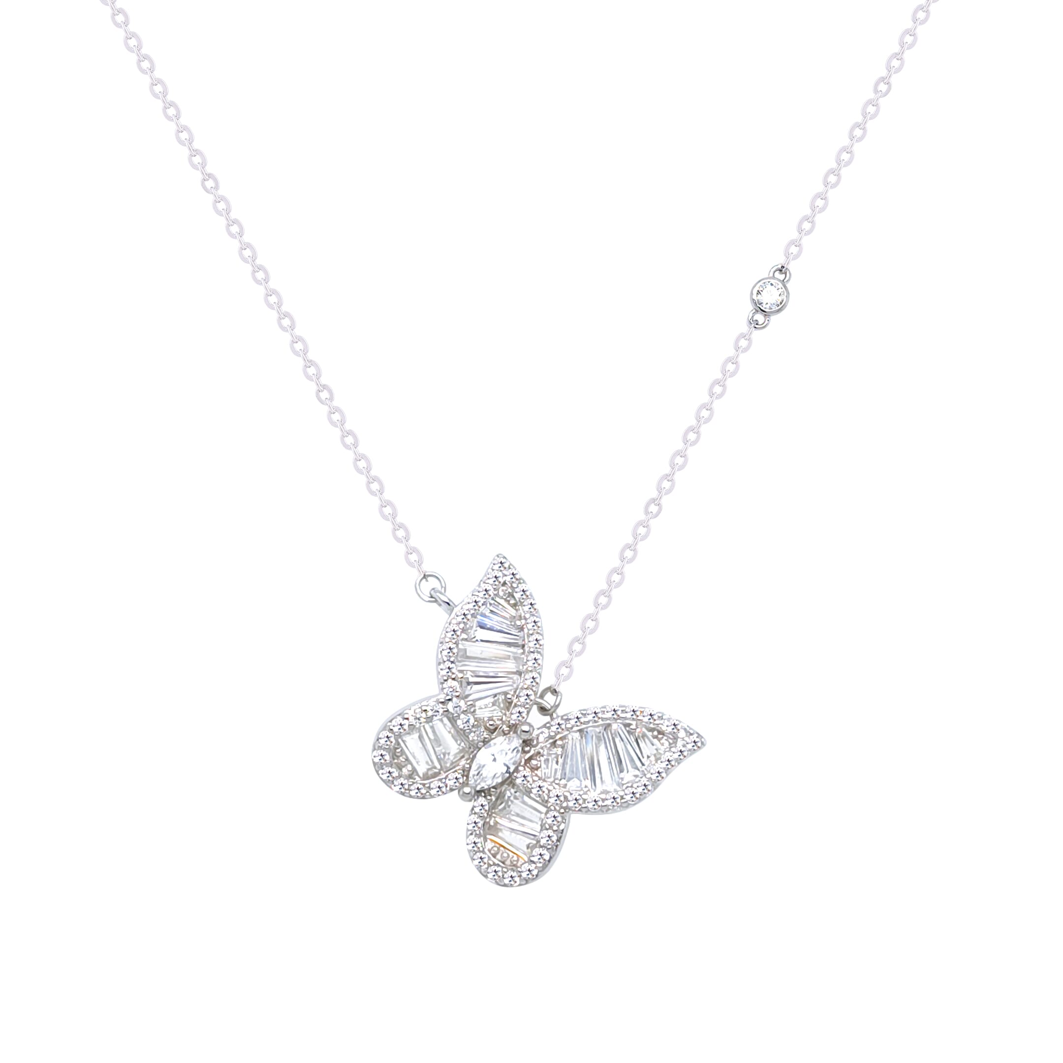 Asfour Crystal Chain Necklace With Butterfly Design In 925 Sterling Silver-NR0550