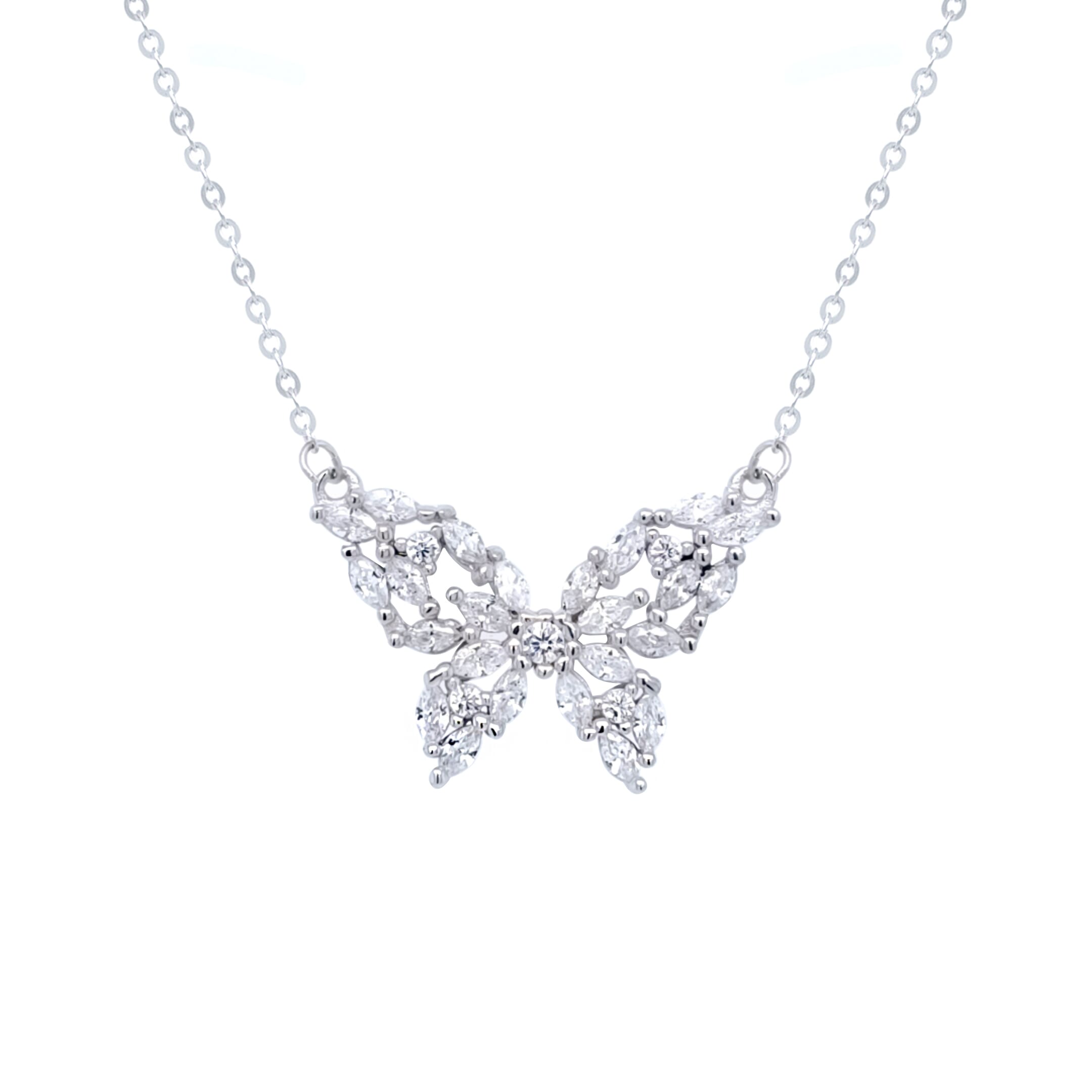عصفور كريستال عقد فضة تنس عيار 925 علي شكل فراشة مرصعة بفصوص الزركون - ND0419