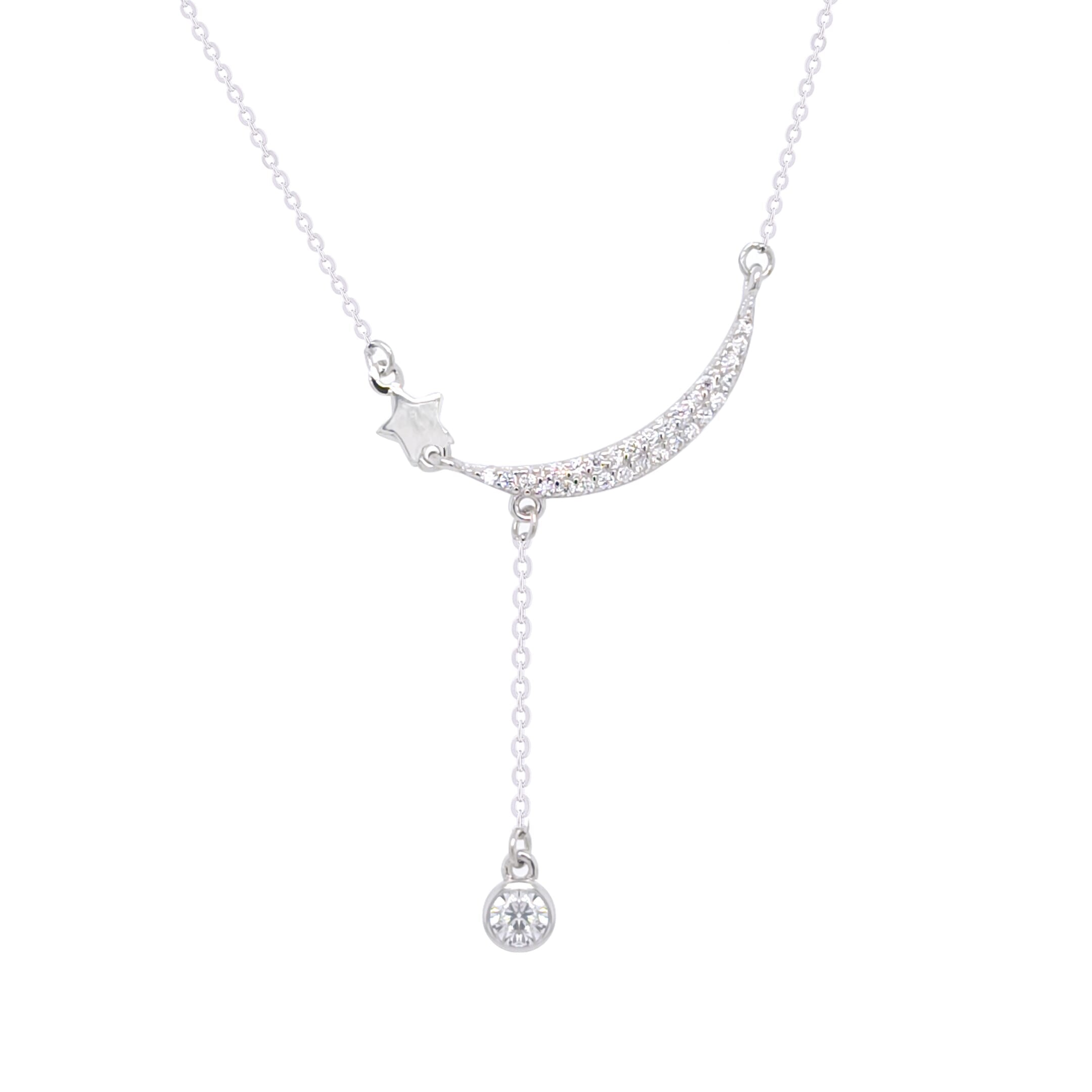 Asfour Crystal Chain Necklace With Crescent & Star Pendant In 925 Sterling Silver-NR0552