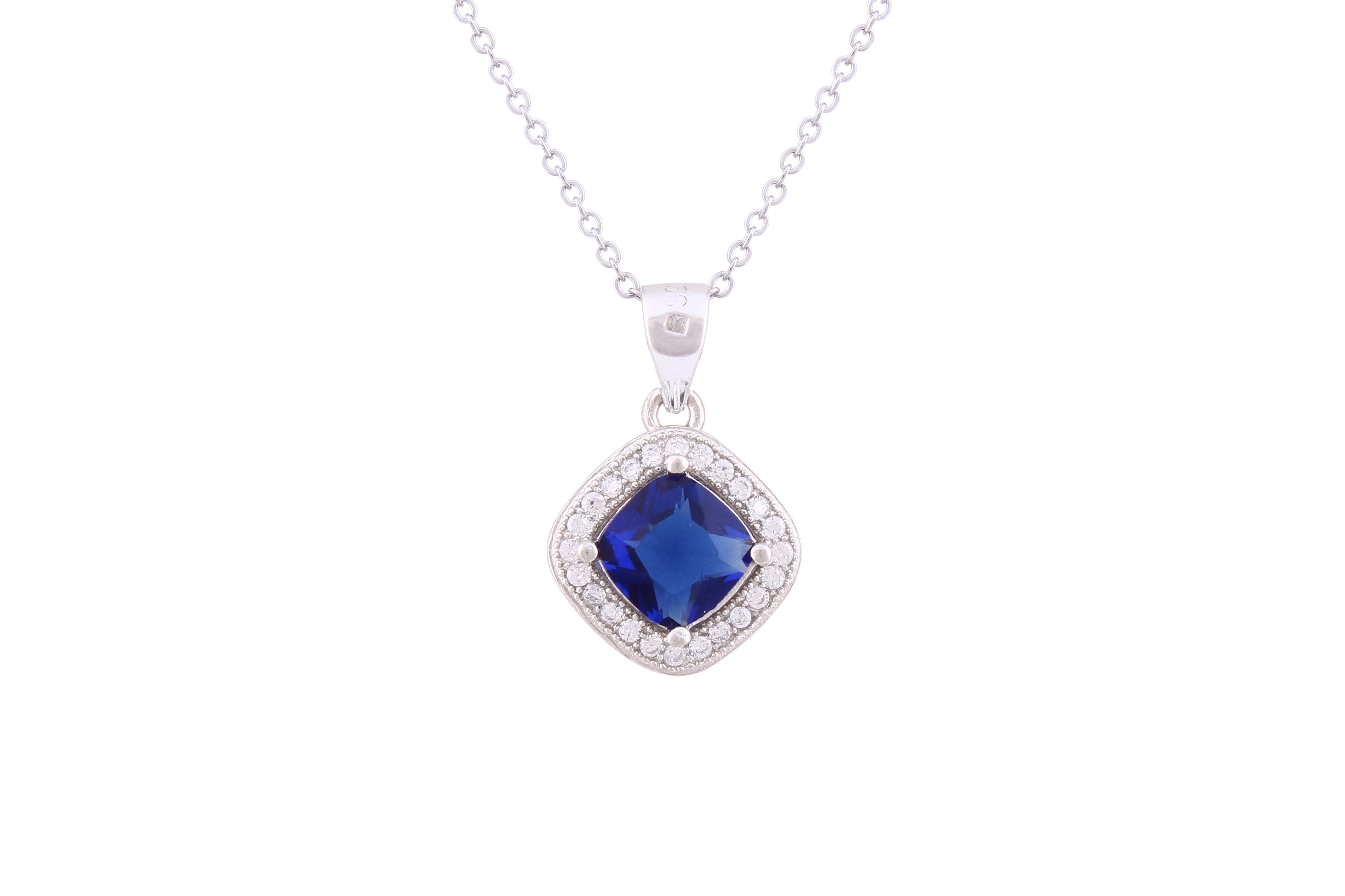 عصفور كريستال سلسلة فضة عيار 925 بتصميم مربع ازرق مرصع بالزركون - ND0202-B