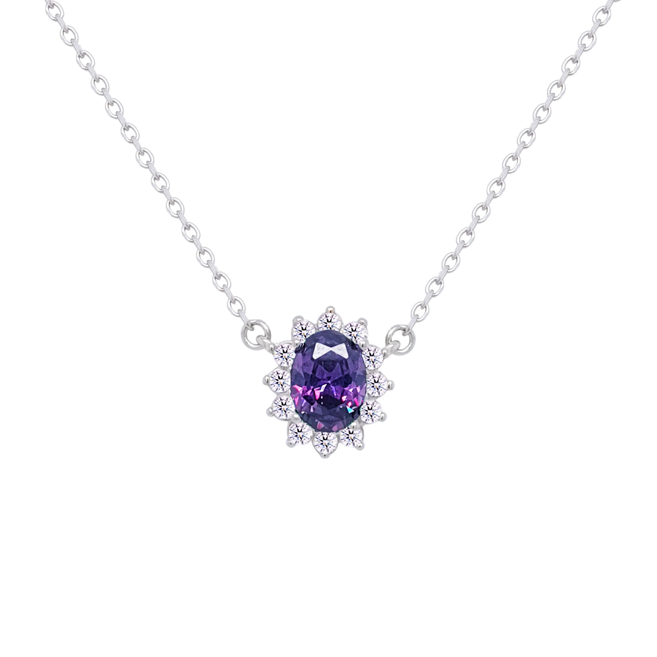 عصفور كريستال سلسلة فضة عيار 925 بتصميم بيضاوي لون تنزانيت غامق مرصع بالزركون - ND0392-N5