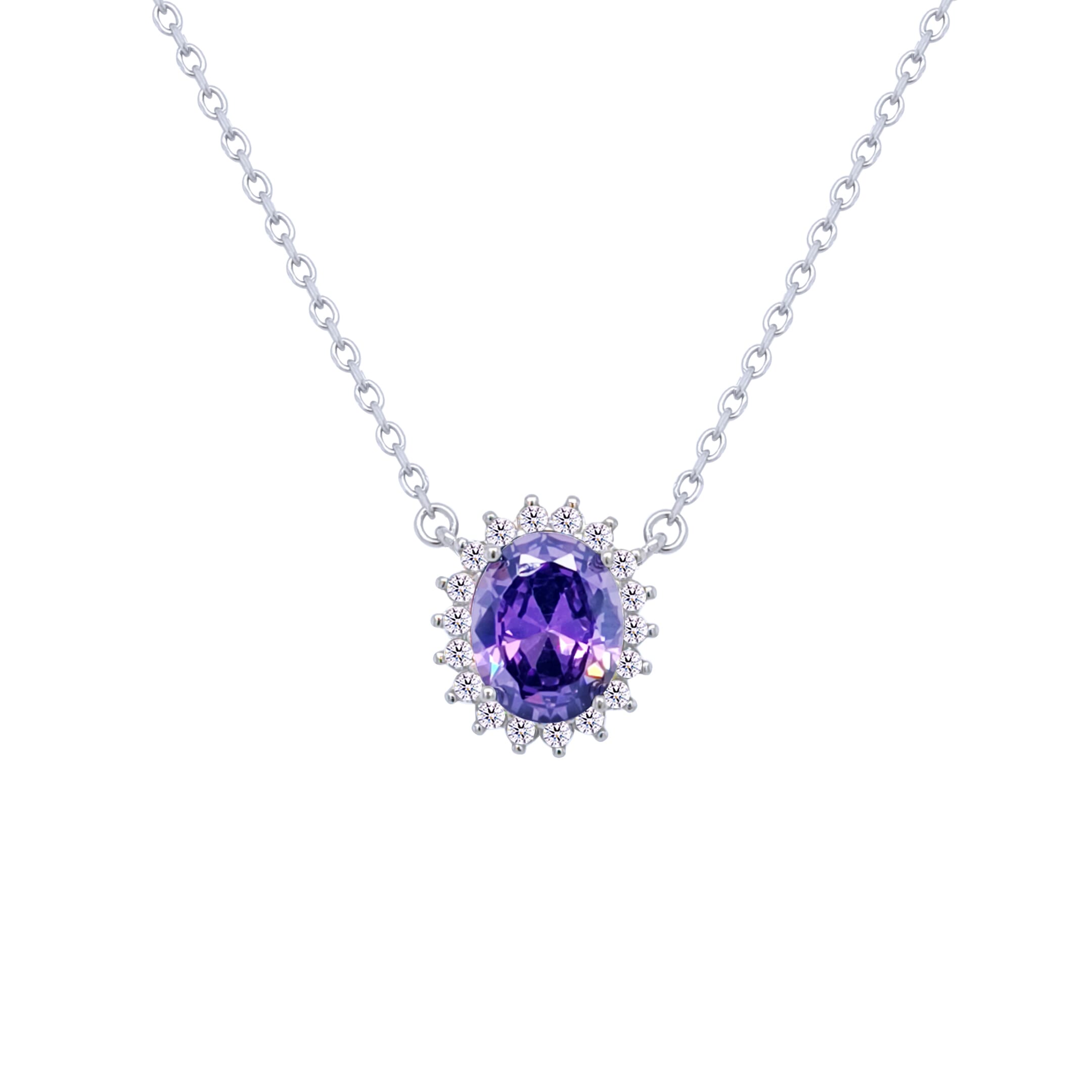 عصفور كريستال سلسلة فضة عيار 925 بتصميم بيضاوي لون تنزانيت غامق مرصع بالزركون - ND0397-N5