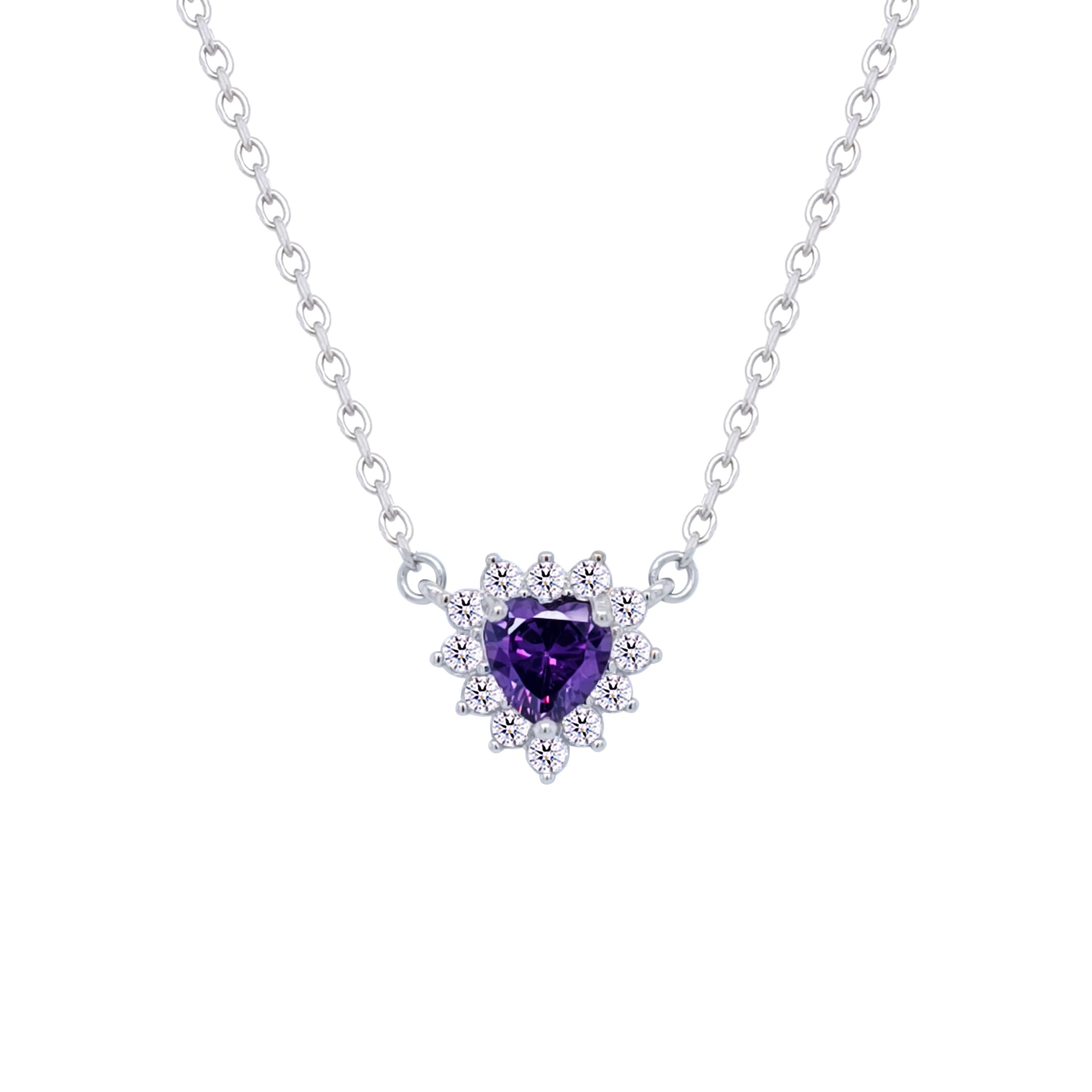 عصفور كريستال سلسلة فضة عيار 925 بتصميم قلب لون تنزانيت غامق مرصع بالزركون - ND0394-N5