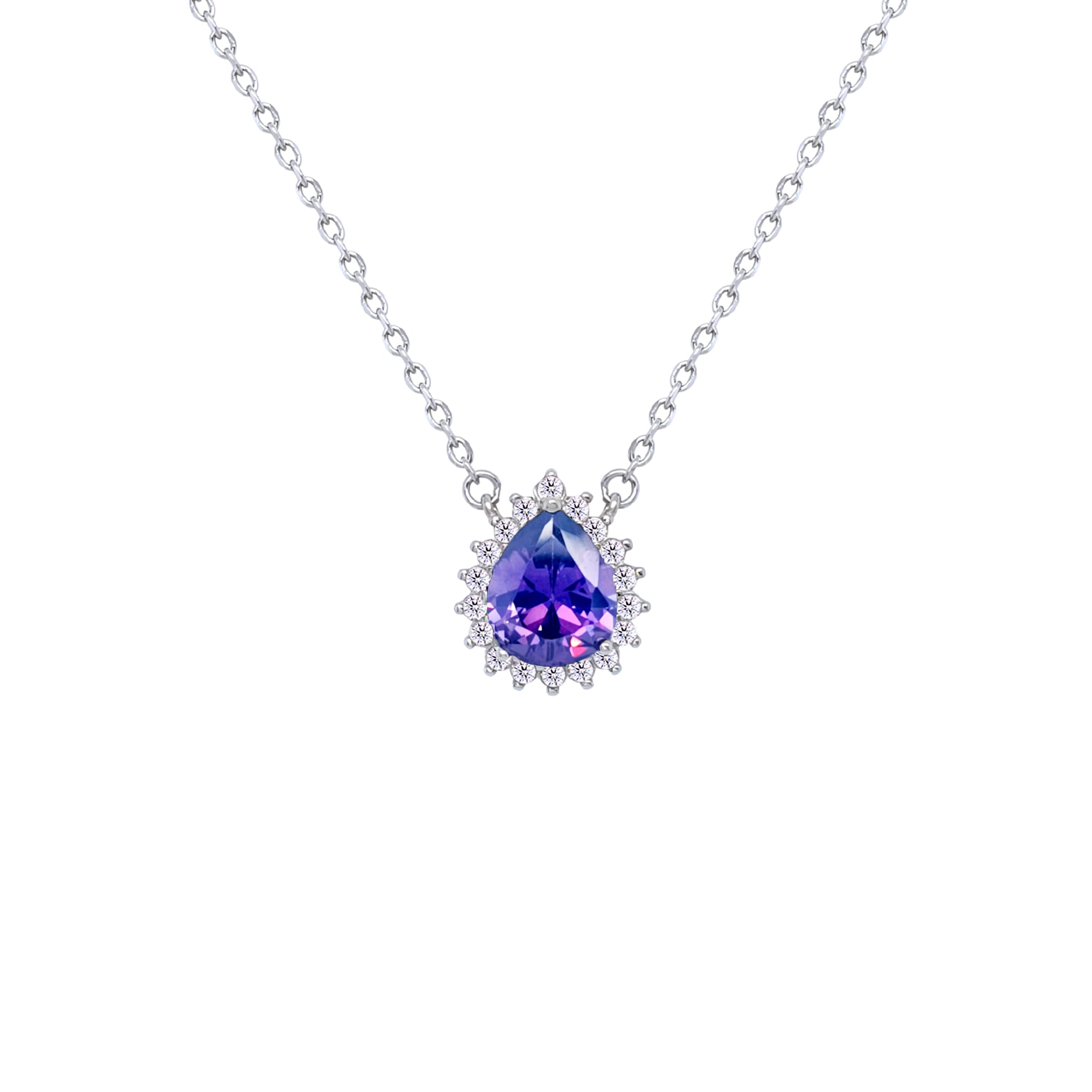 عصفور كريستال سلسلة فضة عيار 925 بتصميم كمثري لون تنزانيت غامق مرصع بالزركون - ND0396-N5