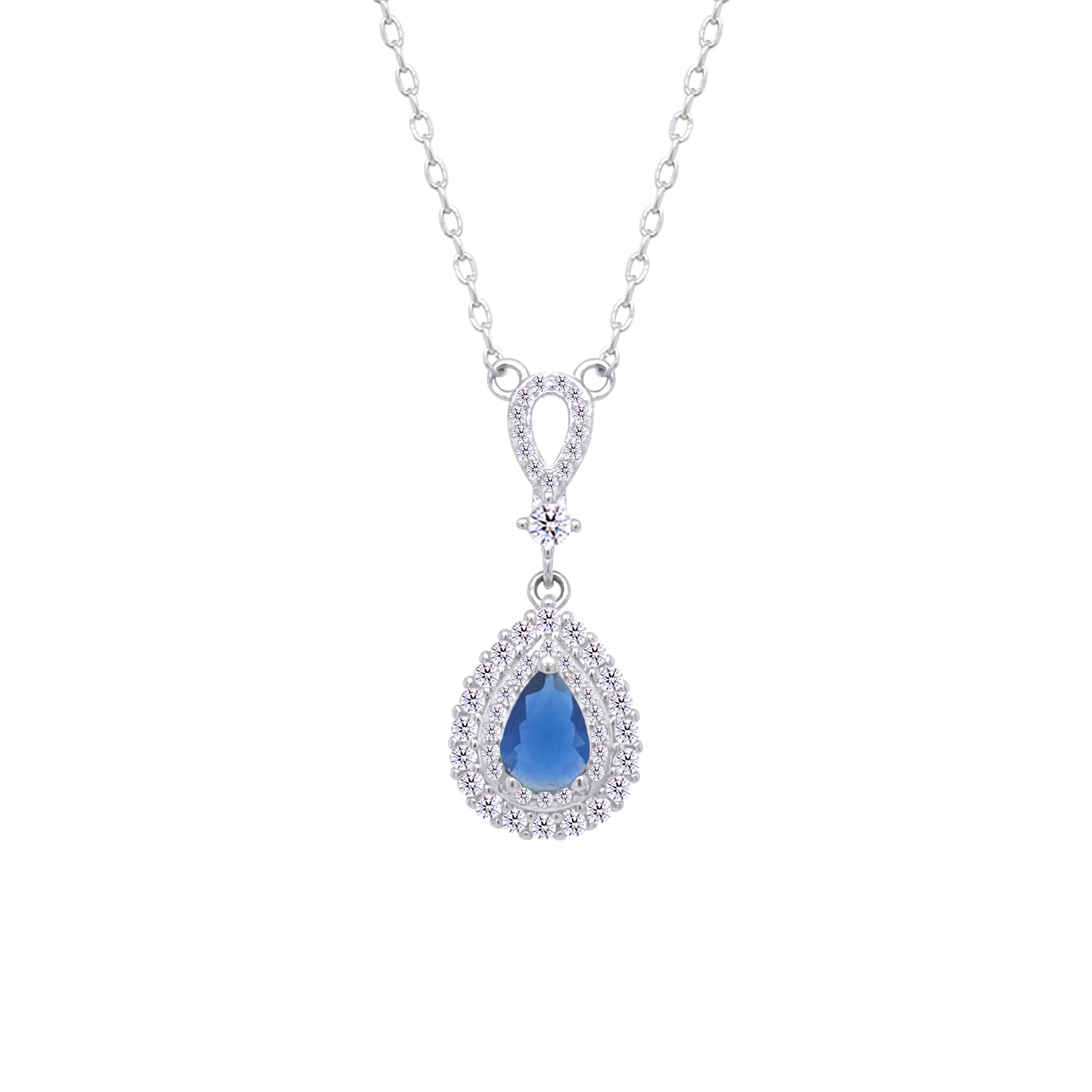 عصفور كريستال سلسلة فضة عيار 925 بتصميم كمثري ازرق مرصع بالزركون - ND0462-B