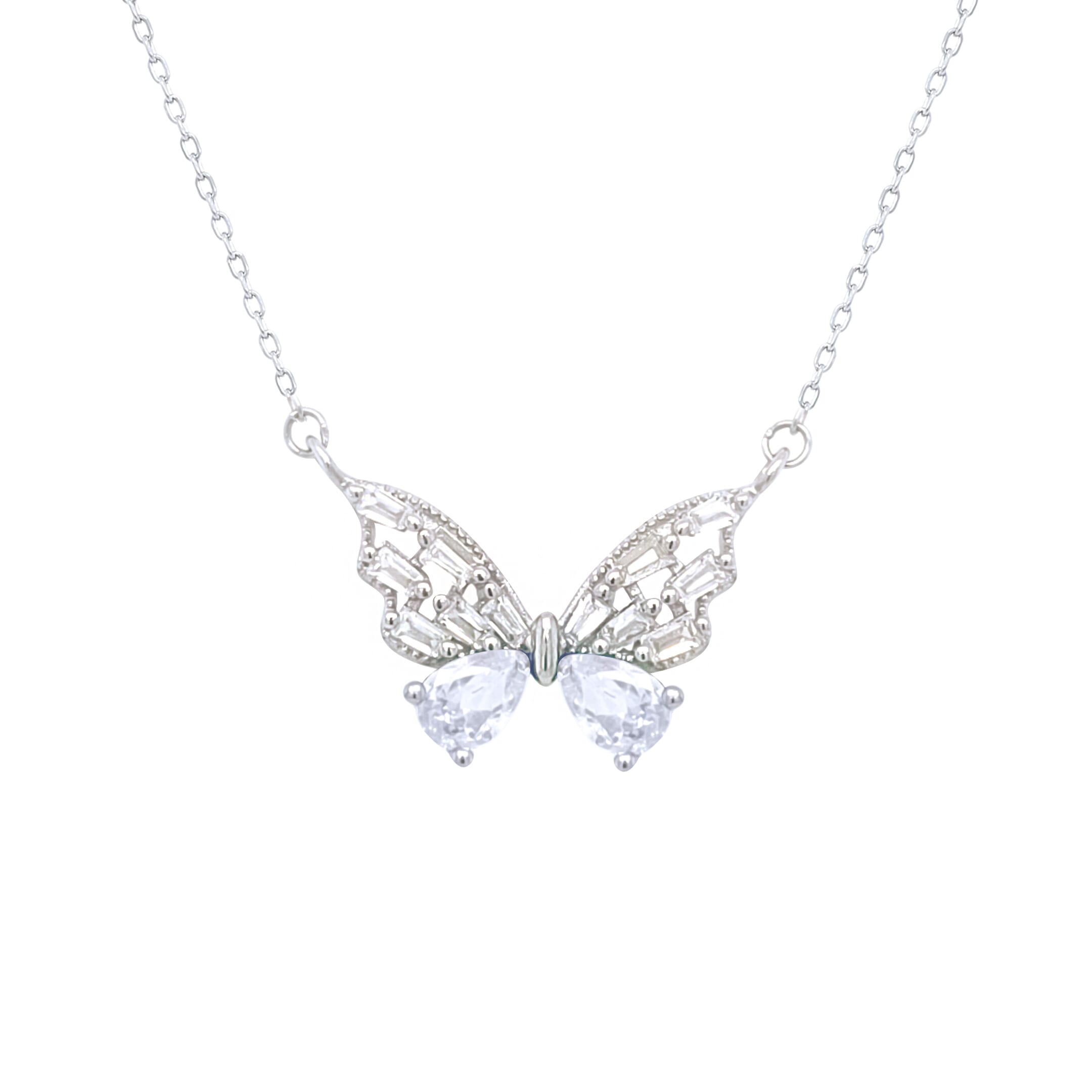 عصفور كريستال سلسلة فضة عيار 925 علي شكل فراشة مرصعة بالزركون - ND0438
