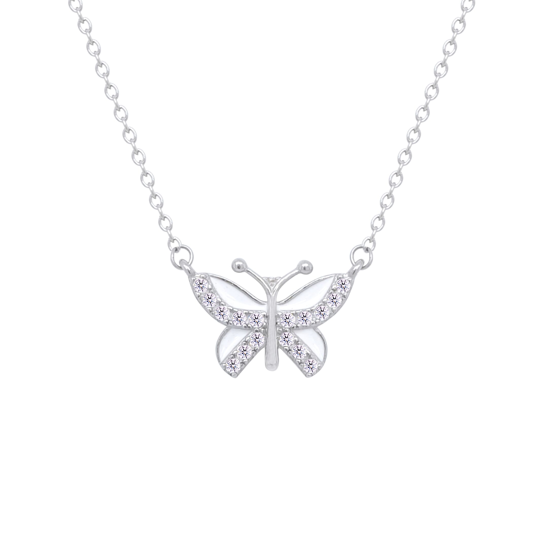 عصفور كريستال سلسلة فضة عيار 925 علي شكل فراشة مرصعة بالزركون - ND0439