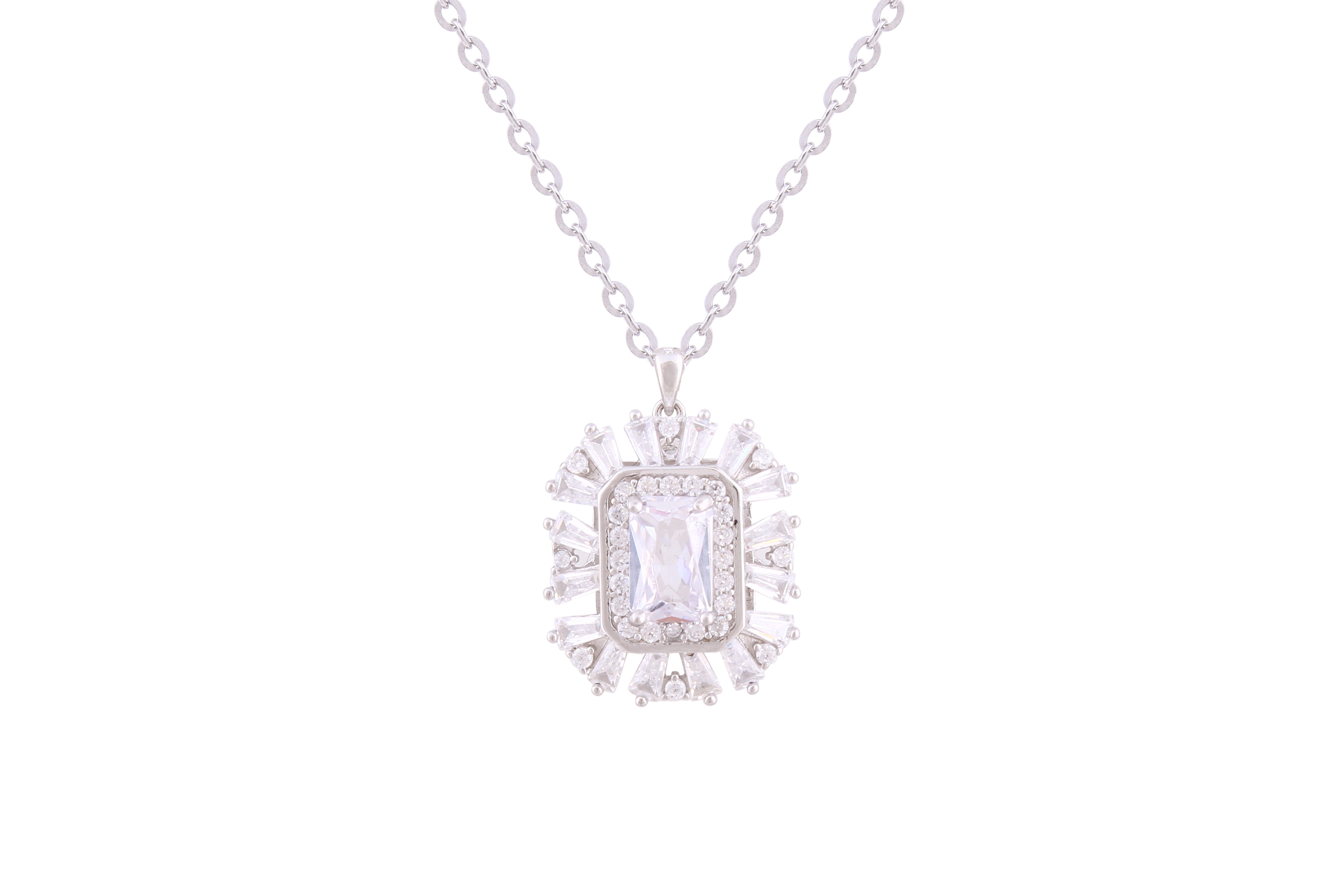 Asfour Crystal Chain Necklace With Decorative Design In 925 Sterling Silver ND0255
