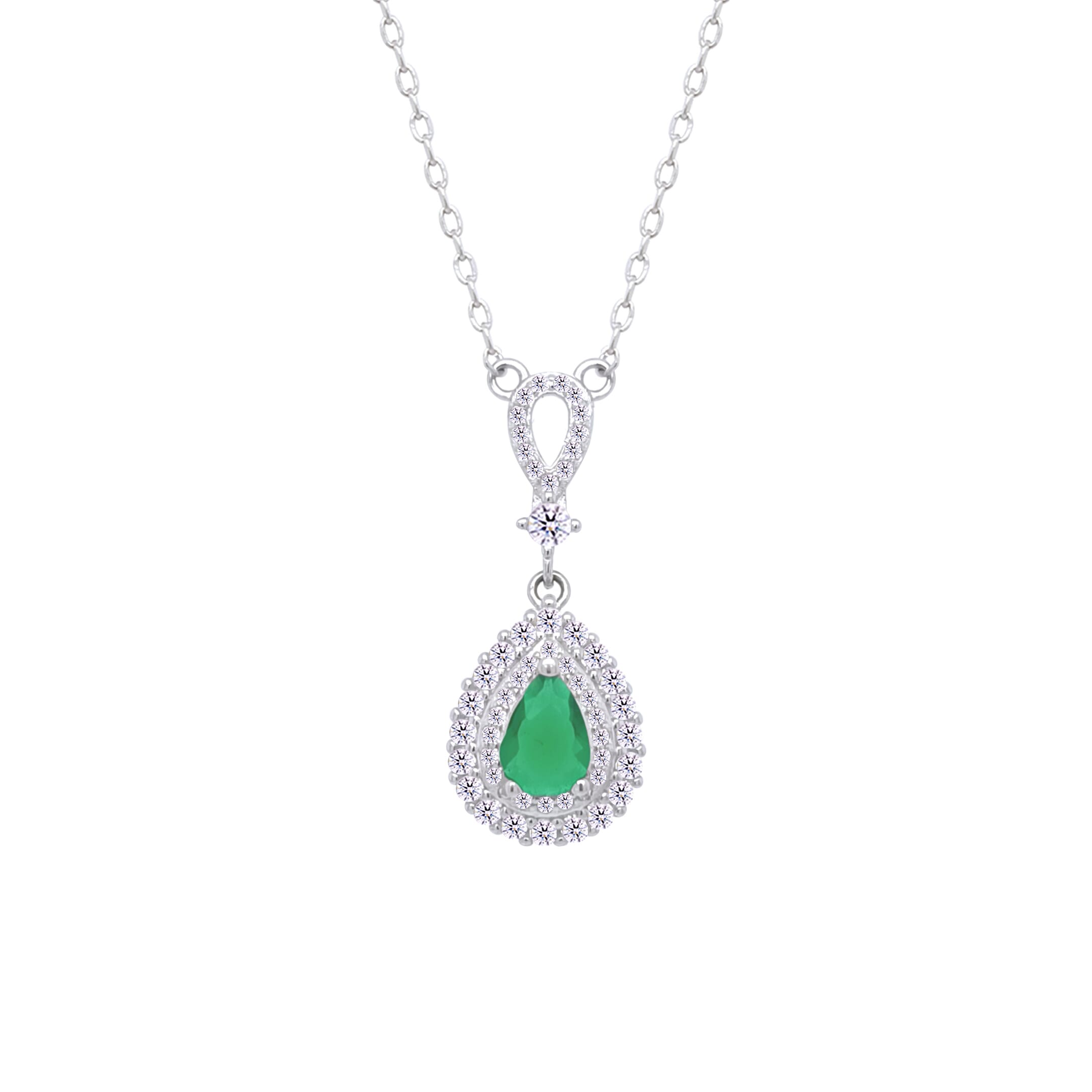 عصفور كريستال سلسلة فضة عيار 925 بتصميم كمثري اخضر مرصع بالزركون - ND0462-G