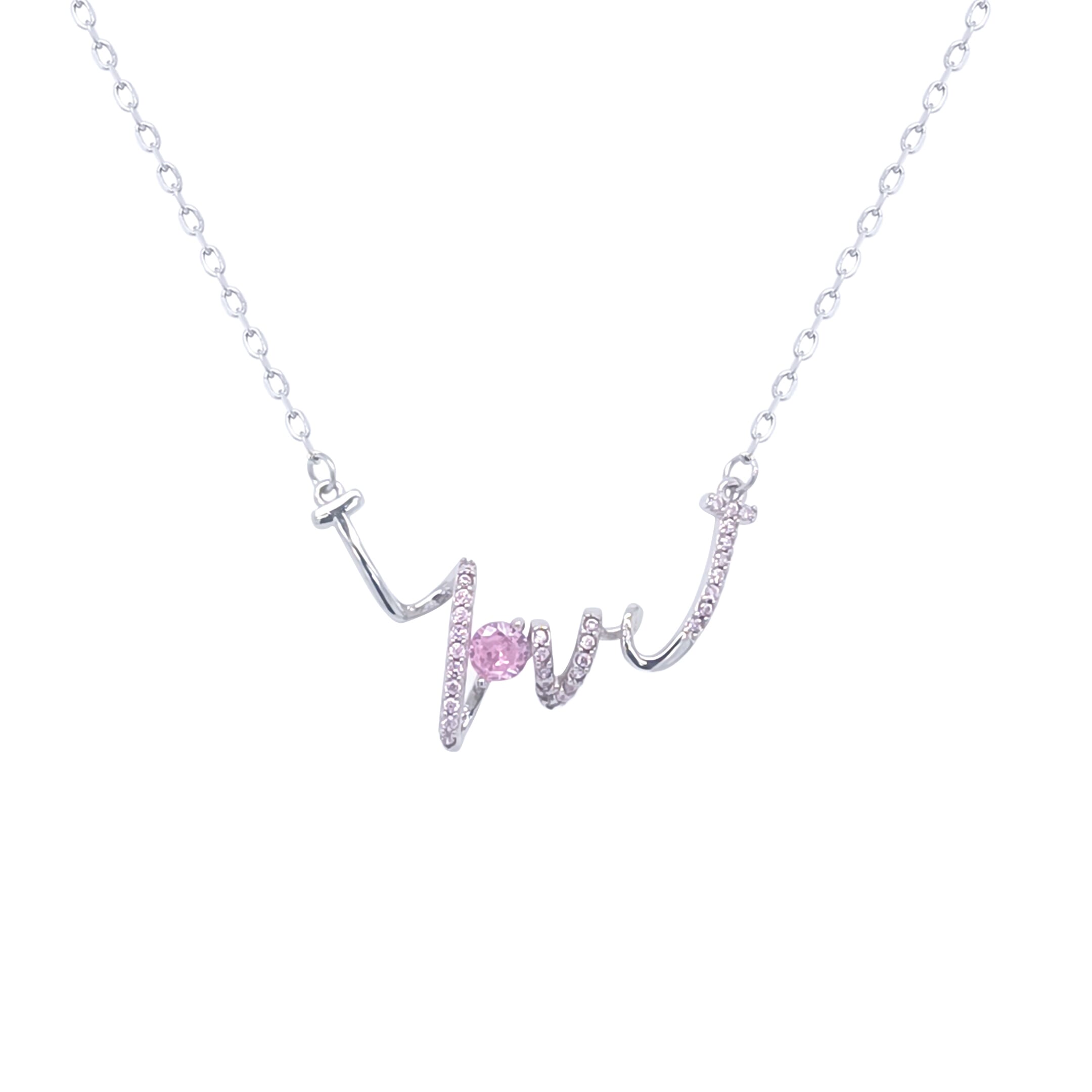 Asfour Crystal Chain Necklace With Decorative " Love " Letter In 925 Sterling Silver-ND0381-O