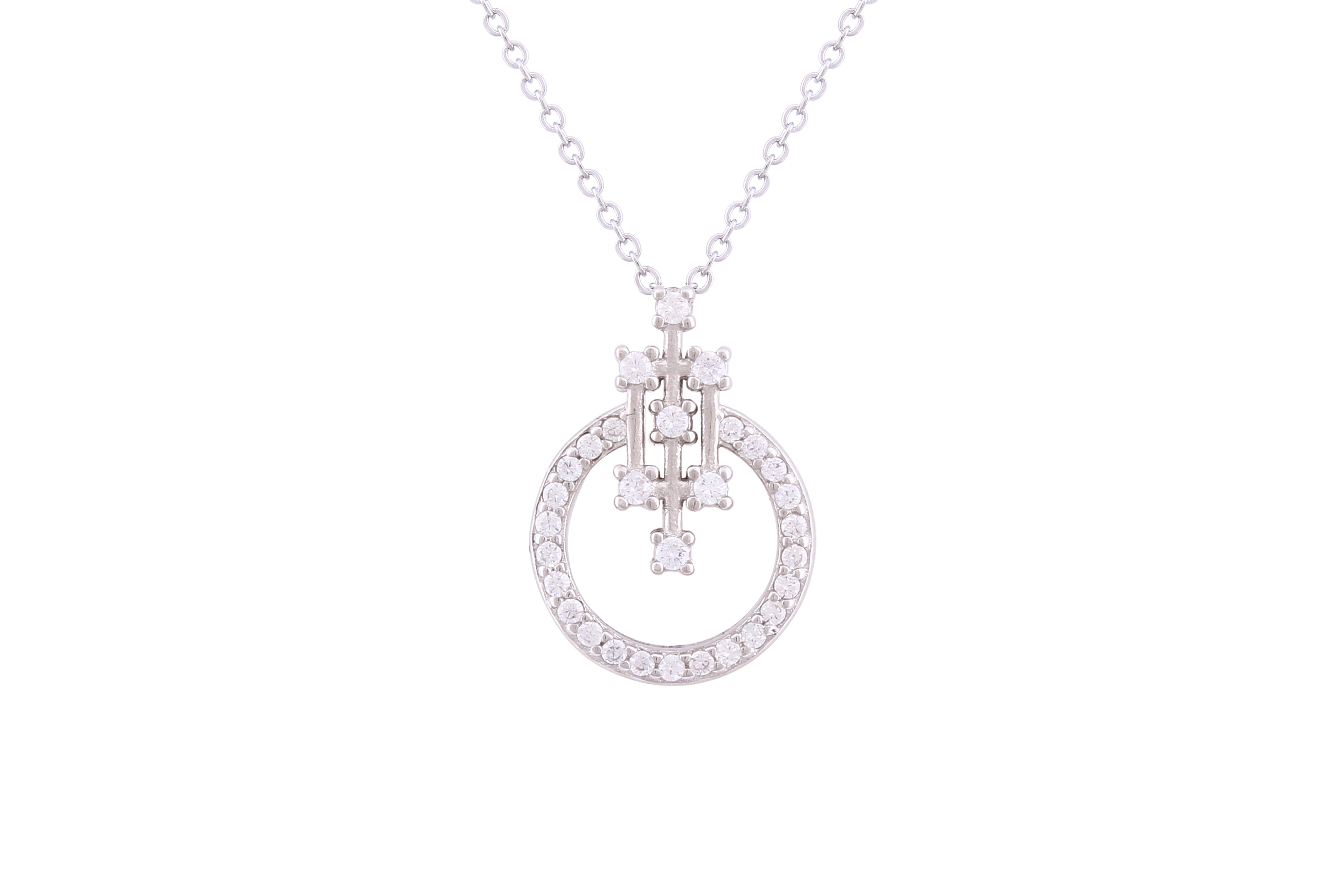 Asfour Crystal Chain Necklace With Decorative Round Pendant In 925 Sterling Silver ND0217