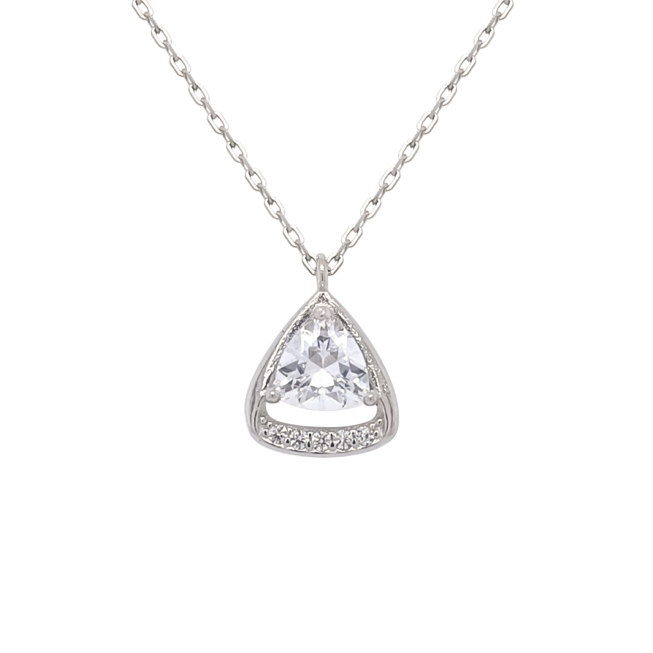 Asfour Crystal Chain Necklace With Decorative Triangle Pendant In 925 Sterling Silver-ND0315