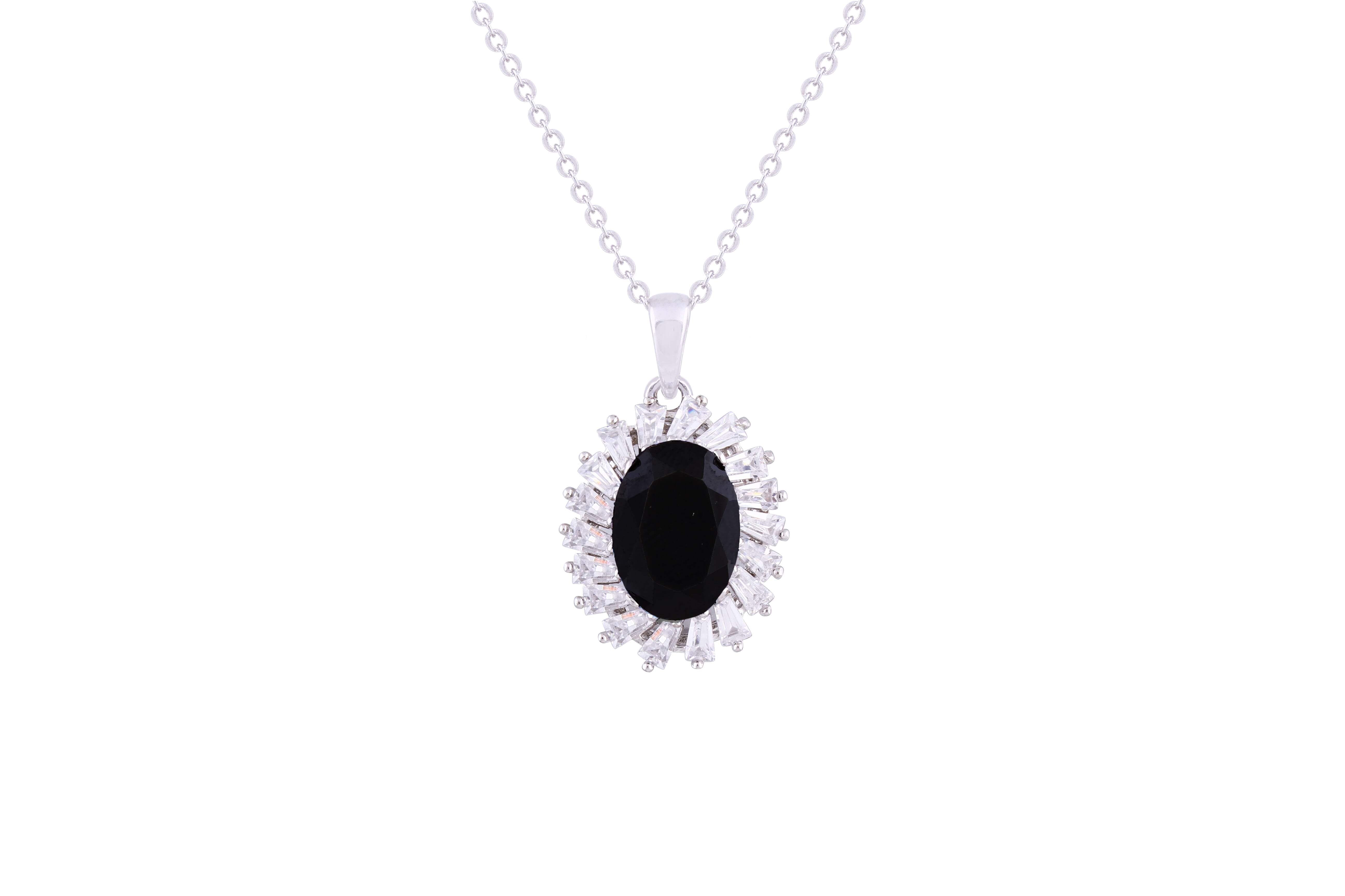 Asfour Crystal Chain Necklace With Black Oval Pendant In 925 Sterling Silver ND0108-P
