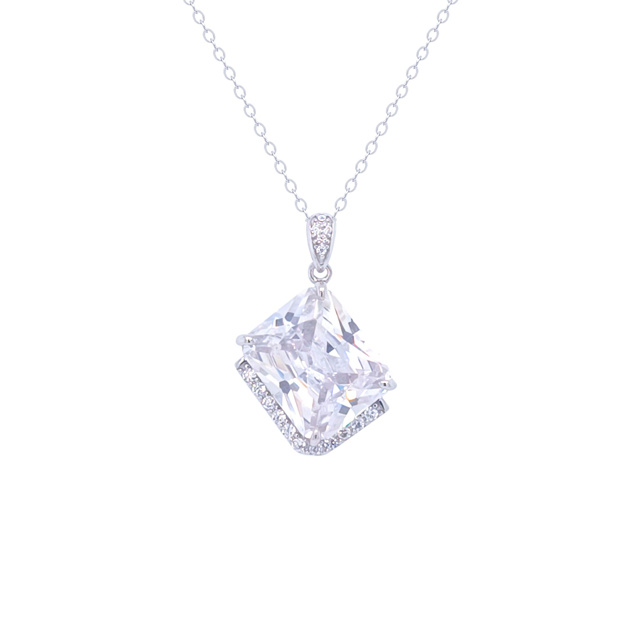 Asfour Crystal Chain Necklace With Emerald Cut Zircon Pendant In 925 Sterling Silver-ND0383