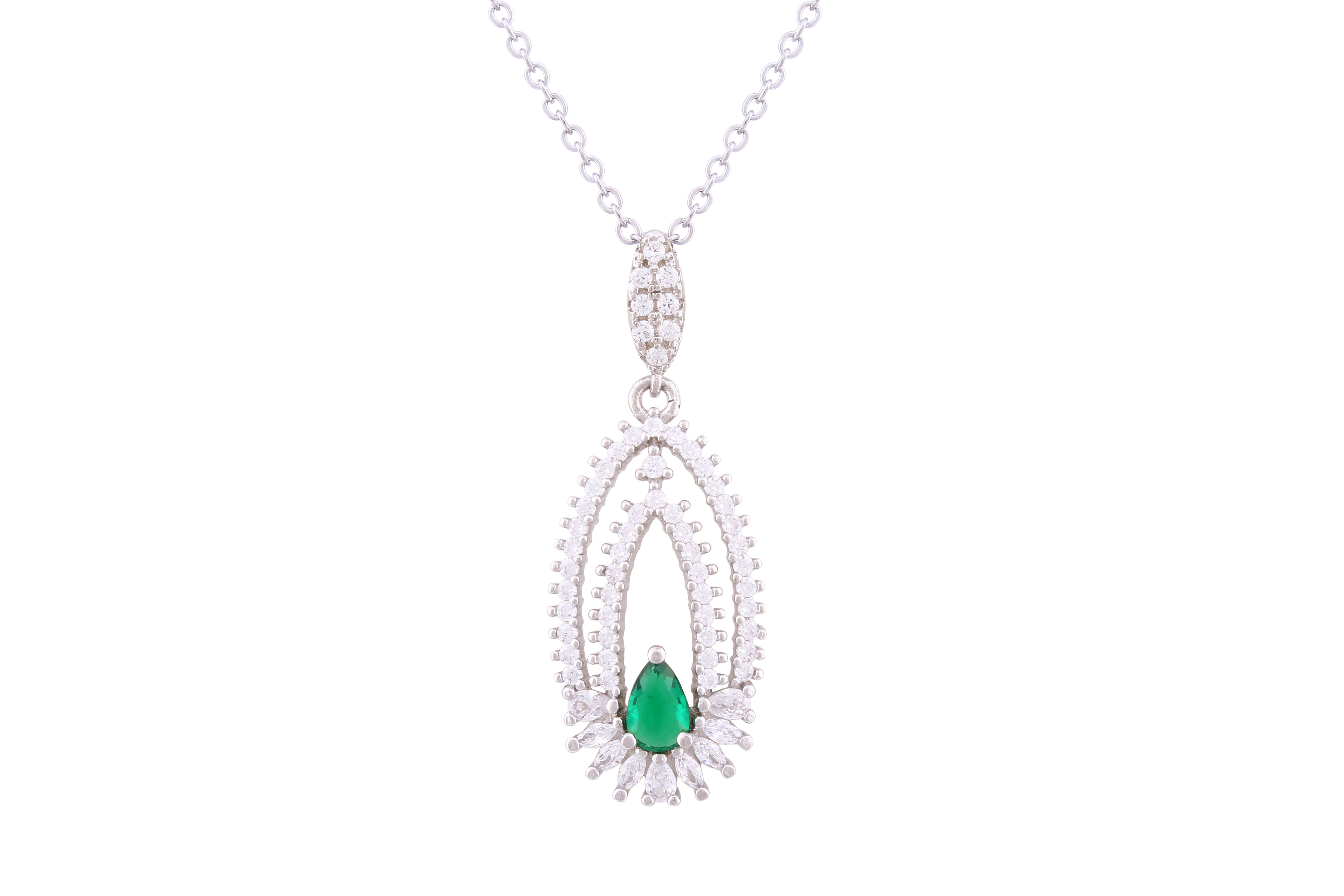 Asfour Crystal Chain Necklace With Emerald Decorative Design In 925 Sterling Silver ND0275-WG