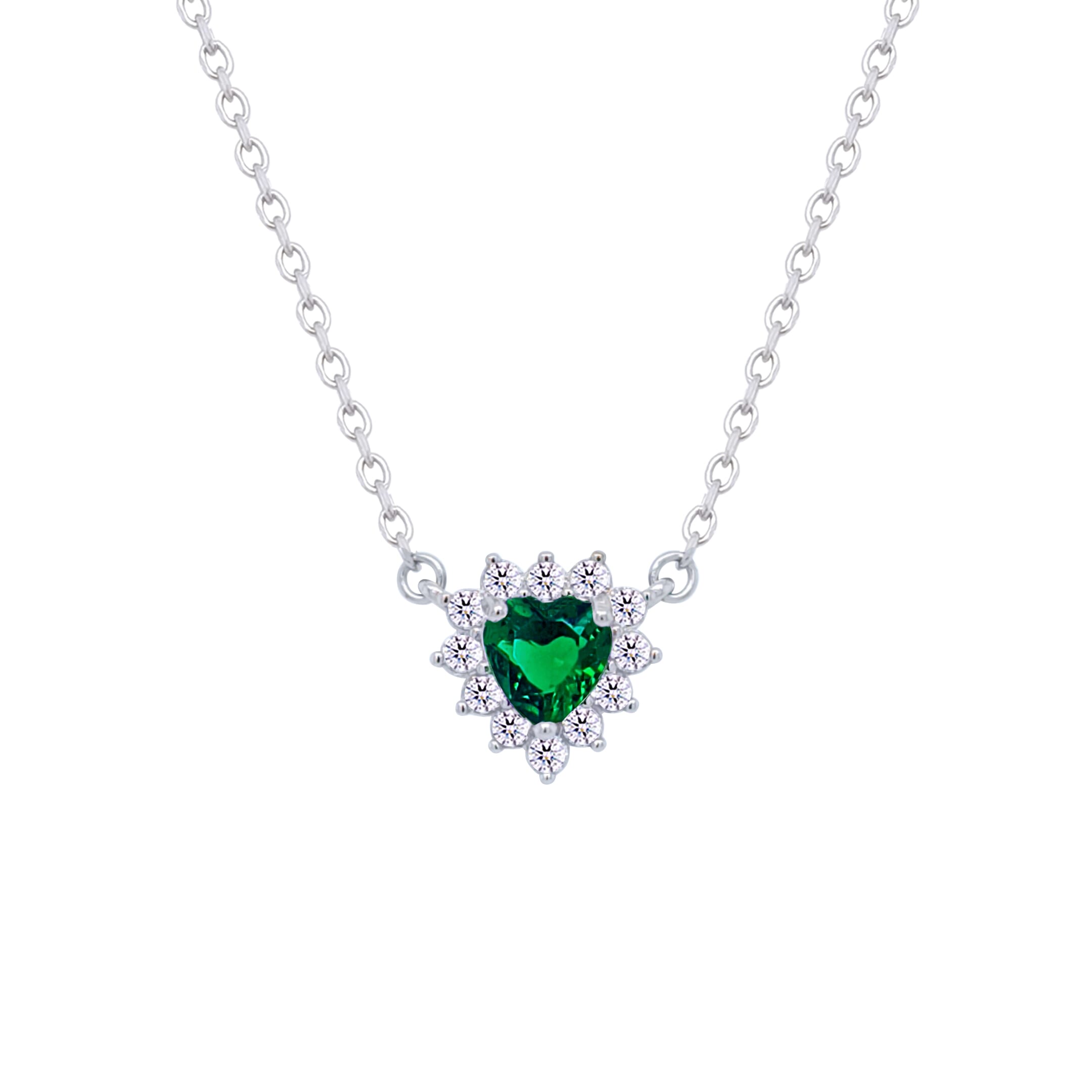 عصفور كريستال سلسلة فضة عيار 925 بتصميم قلب اخضر مرصع بالزركون - ND0394-G