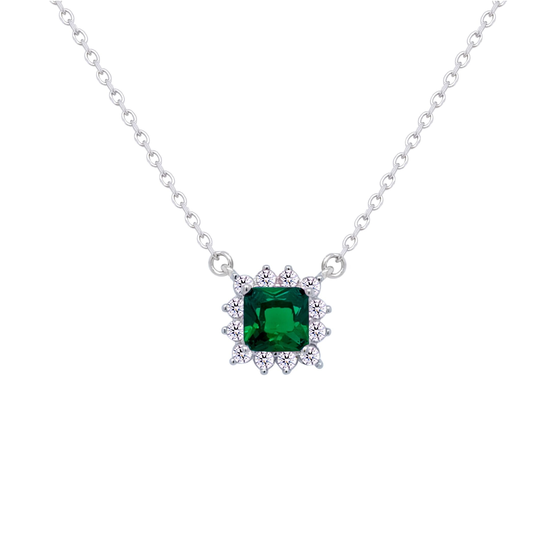 Asfour Crystal Chain Necklace With Emerald Square Design In 925 Sterling Silver-ND0393-G